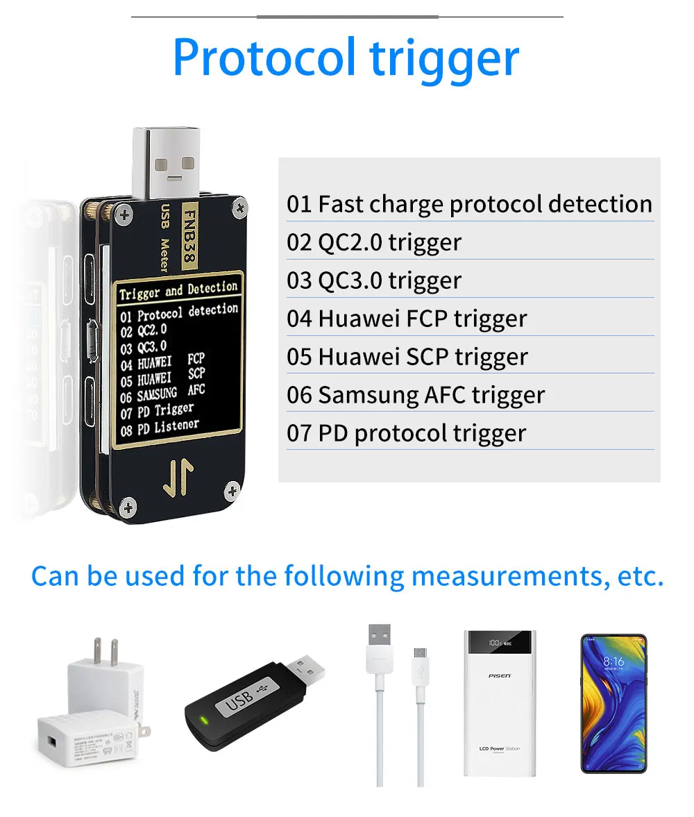 Тестер емкости протокола, измеритель тока и напряжения FNB38, быстр...