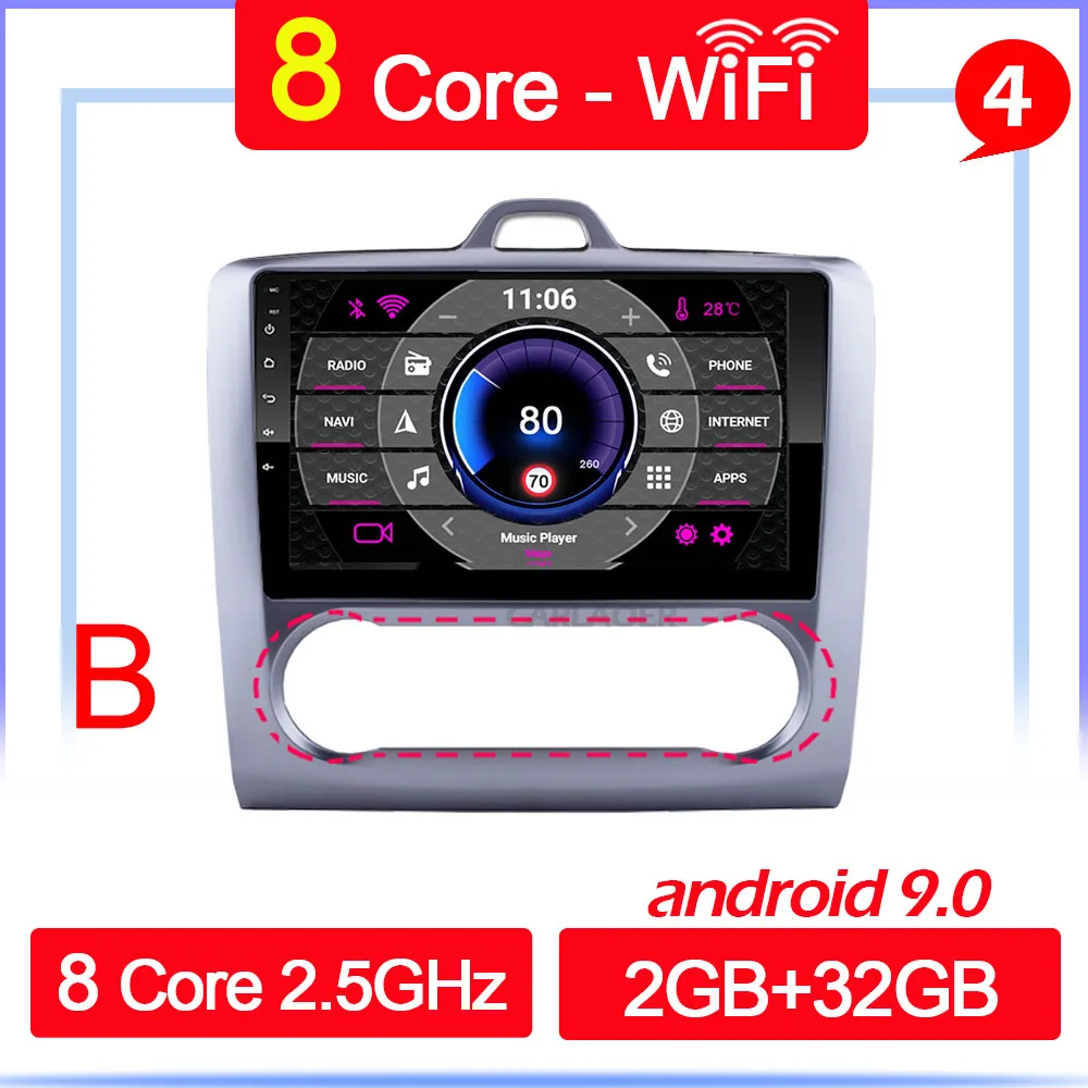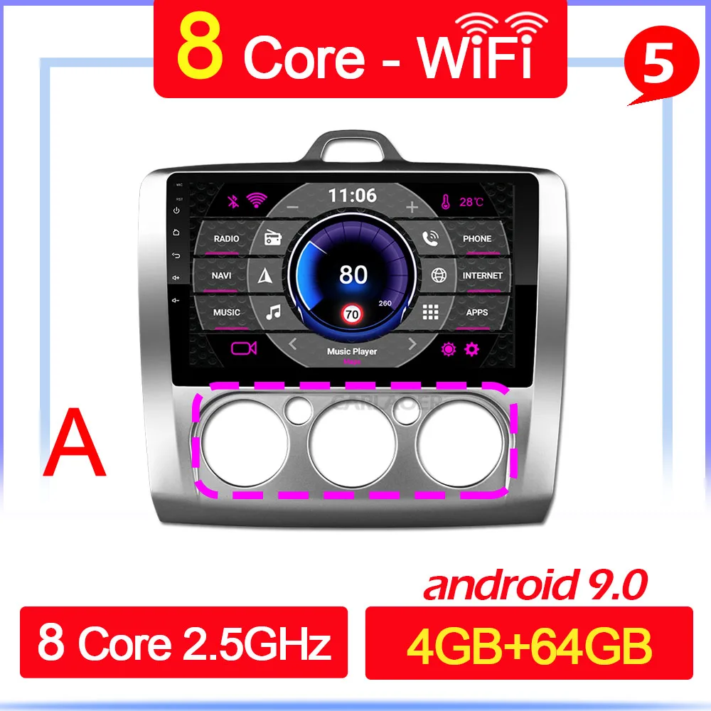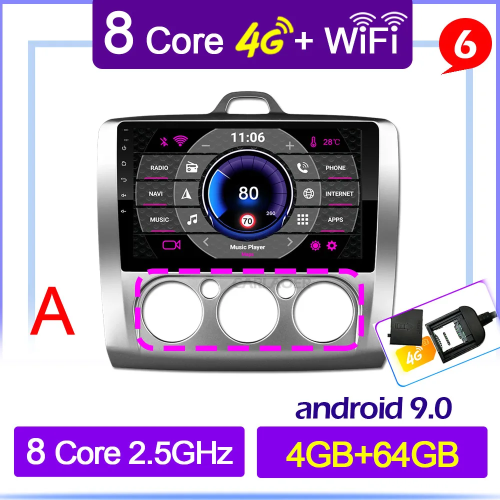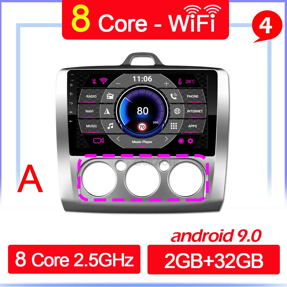 Автомобильный мультимедийный плеер 2 DIN, 9 дюймов, Android, GPS-навигация, радио, для Ford Focus Exi AT 2004 2005 2006 2007 2008 2009 2010 2011