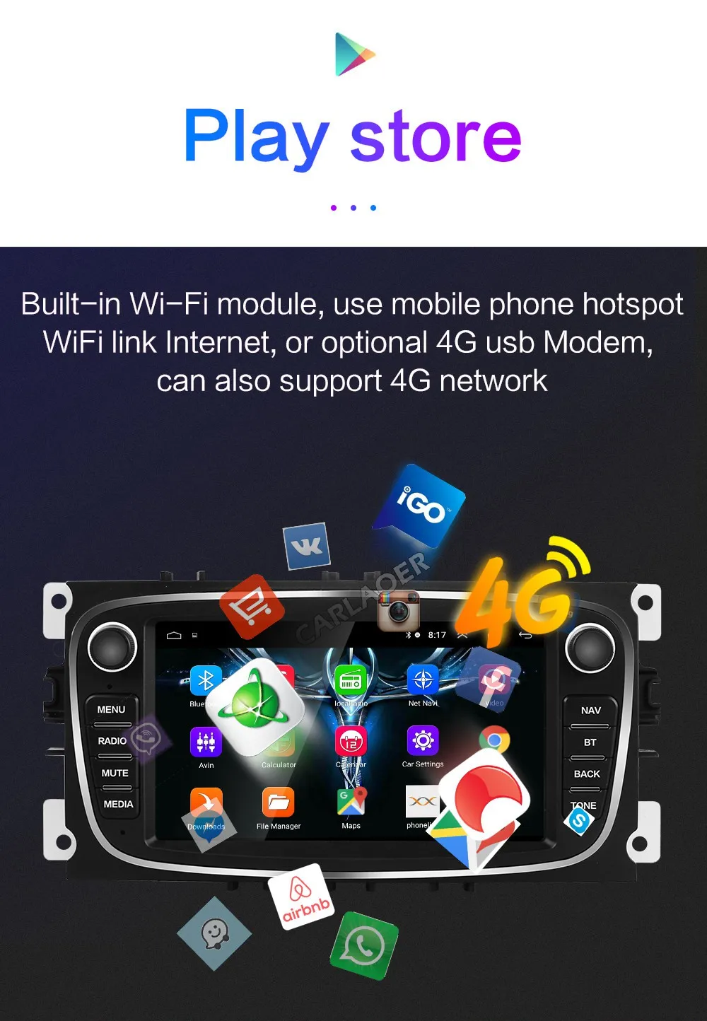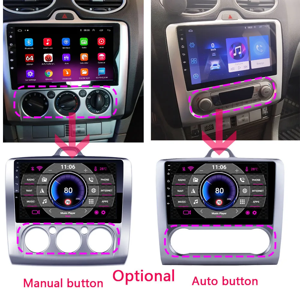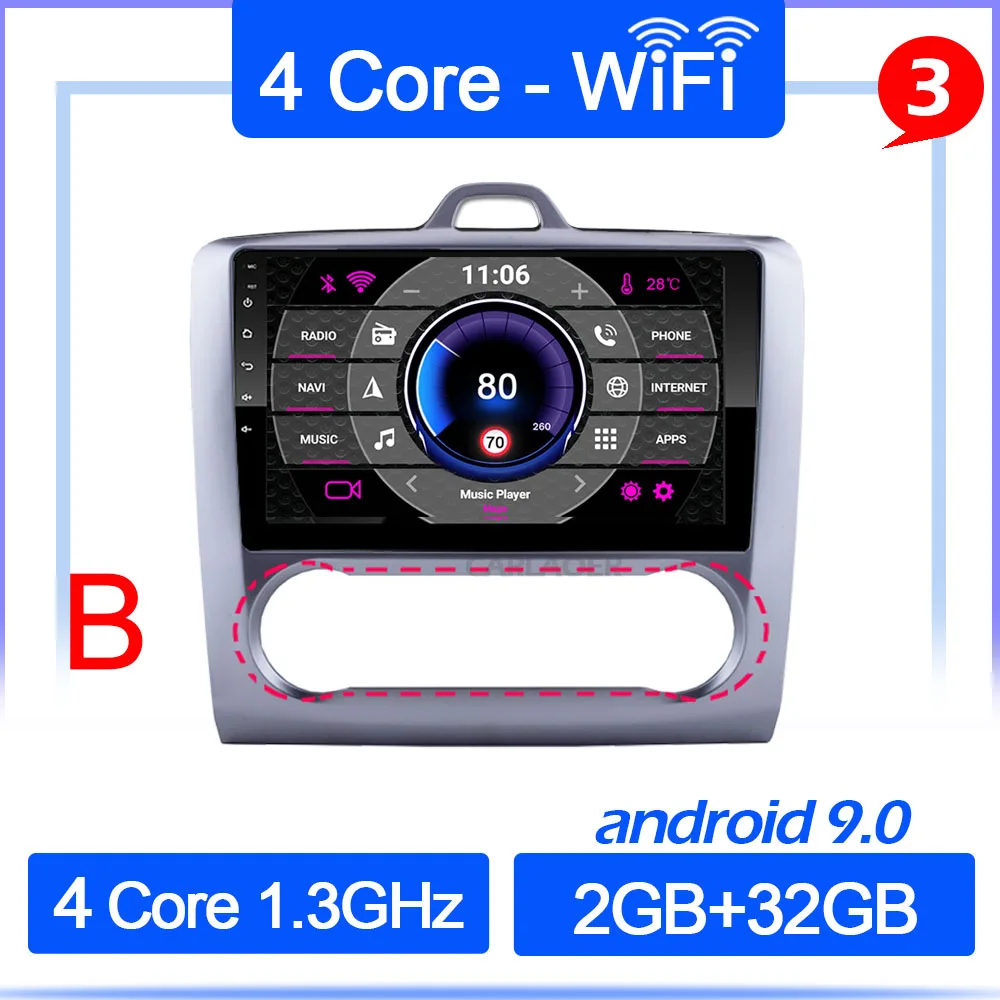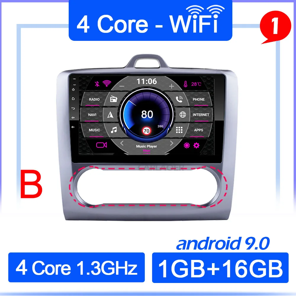Автомобильный мультимедийный плеер 2 DIN, 9 дюймов, Android, GPS-навигация, радио, для Ford Focus Exi AT 2004 2005 2006 2007 2008 2009 2010 2011