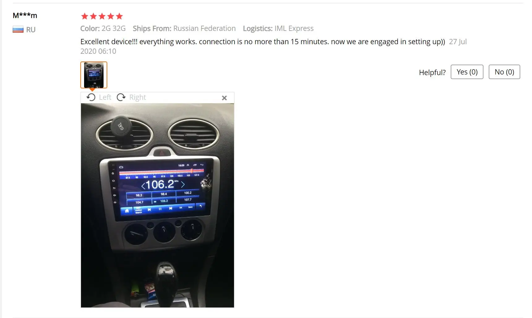 Все точно соответствует описанию. Посылка прибыла через 2 недели, упаковка была защищена очень хорошо с пузырями. Простая установка и работает. Хорошо подходит для ford focus mk2 To bad, нет сертифицированной системы android, поэтому я не могу загрузить и использовать некоторые приложения, такие как netflix. Но за его хорошую покупку и он работает хорошо, не использовали навигацию, еще нужно установить gps антенны в головном вкладыше.