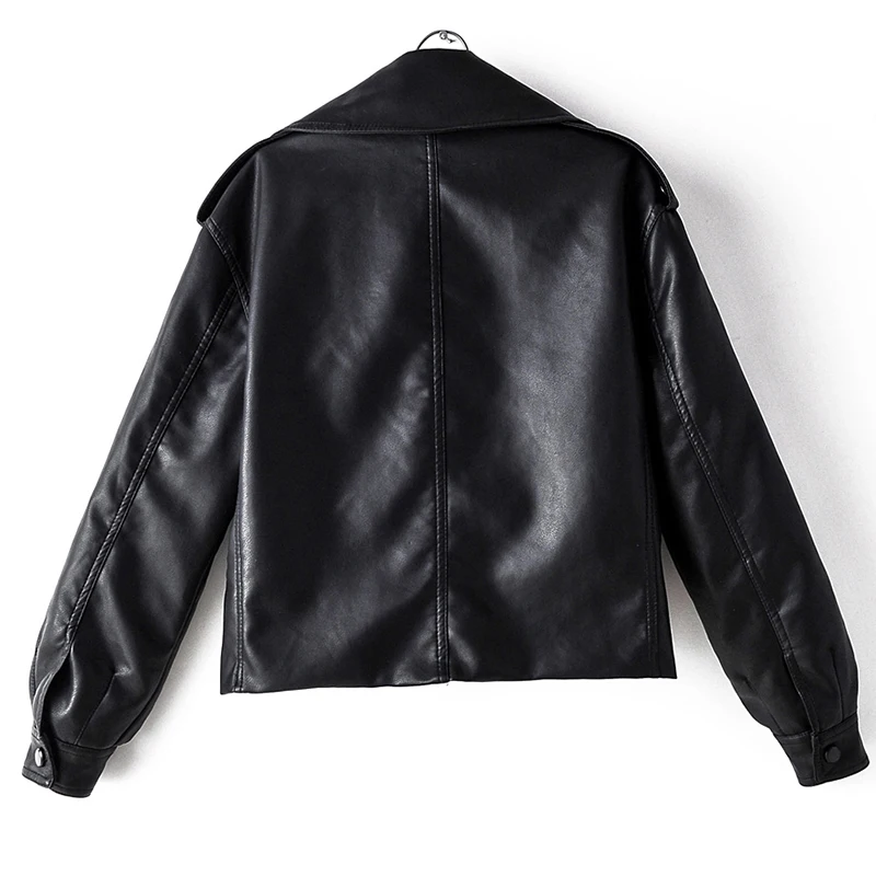 Куртка женская из искусственной кожи, Байкерская, с отложным воротником