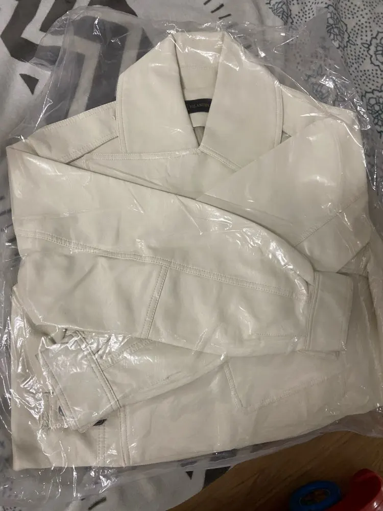 Классная, пришла так быстро, что даже памяться не успела. Есть небольшой запах, думаю в течение дня уже выветрится. Качественно сшито, есть подклад, цвет не ярко белый, а с жёлтым отливом немного. На 105-65-110 взяла S, села именно как хотела, куртка продолжает выглядеть как оверсайз но при этом нет ощущения что вещь не поразмеру и в три раза больше тебя.