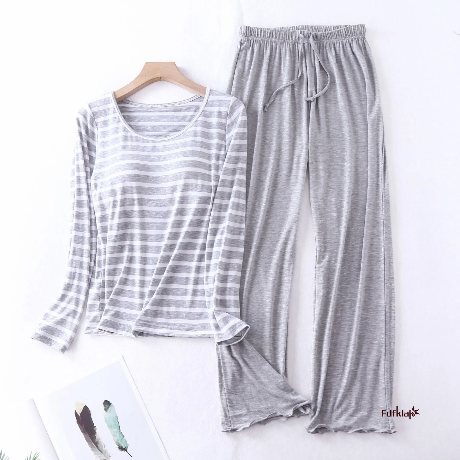 Пижама Fdfklak Женская осенне-зимняя, с длинным рукавом, в полоску