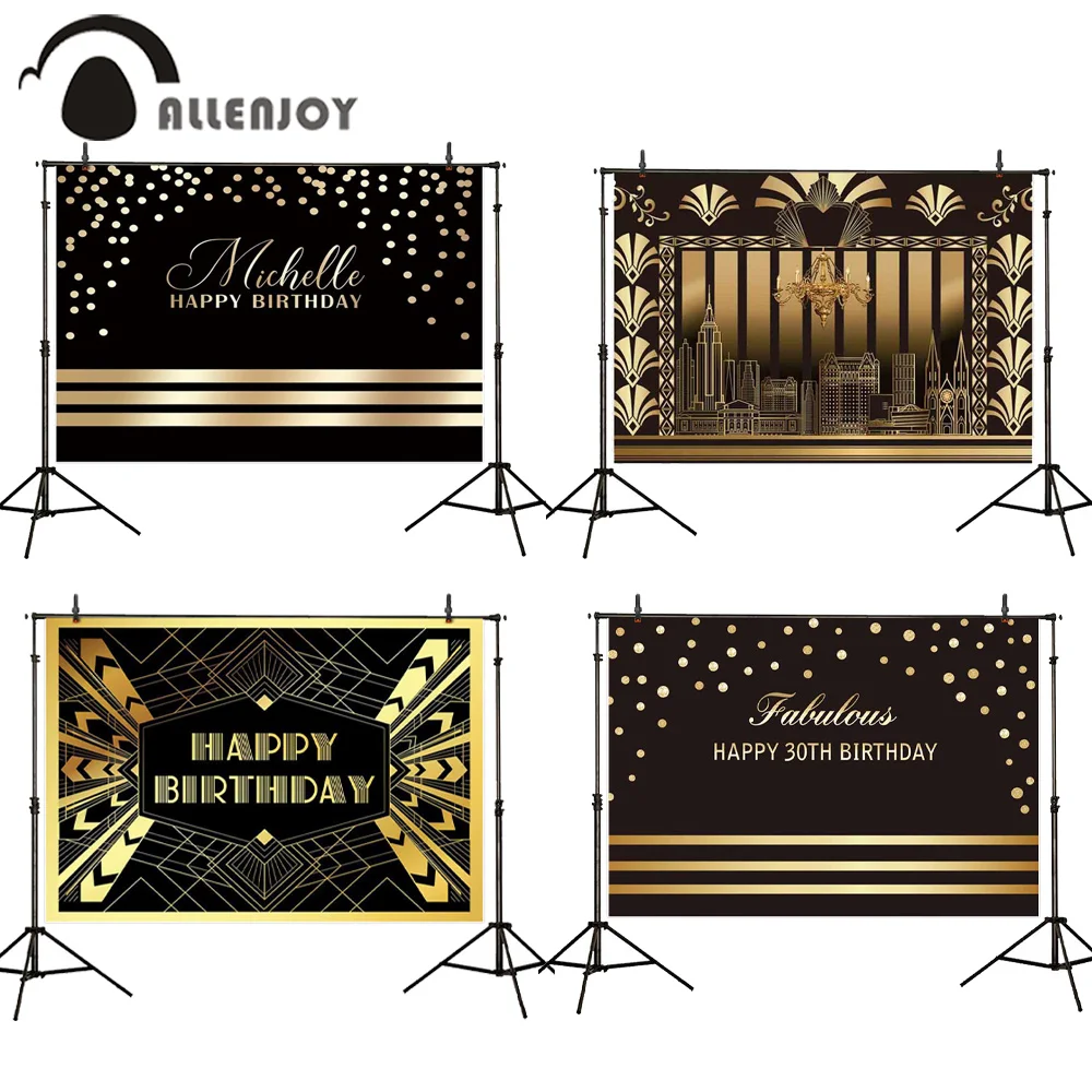 Фотофон Allenjoy с изображением зоны черного и золотого горошек городского пейзажа для взрослых, день рождения оформление мероприятий, Великий Гэтсби праздничные шторы