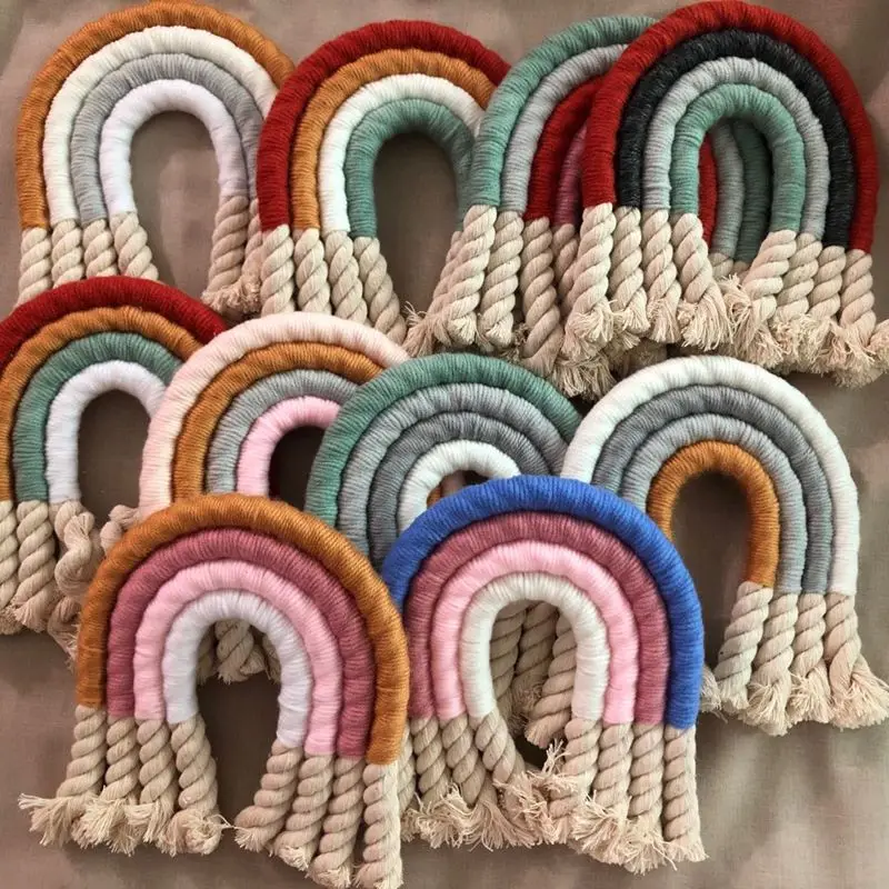 Материал: сделанные вручную красивые украшения из пряжи и хлопковой веревки. Добавьте характер и очарование к любой стене в вашем доме с помощью этой тканой радужной стены.