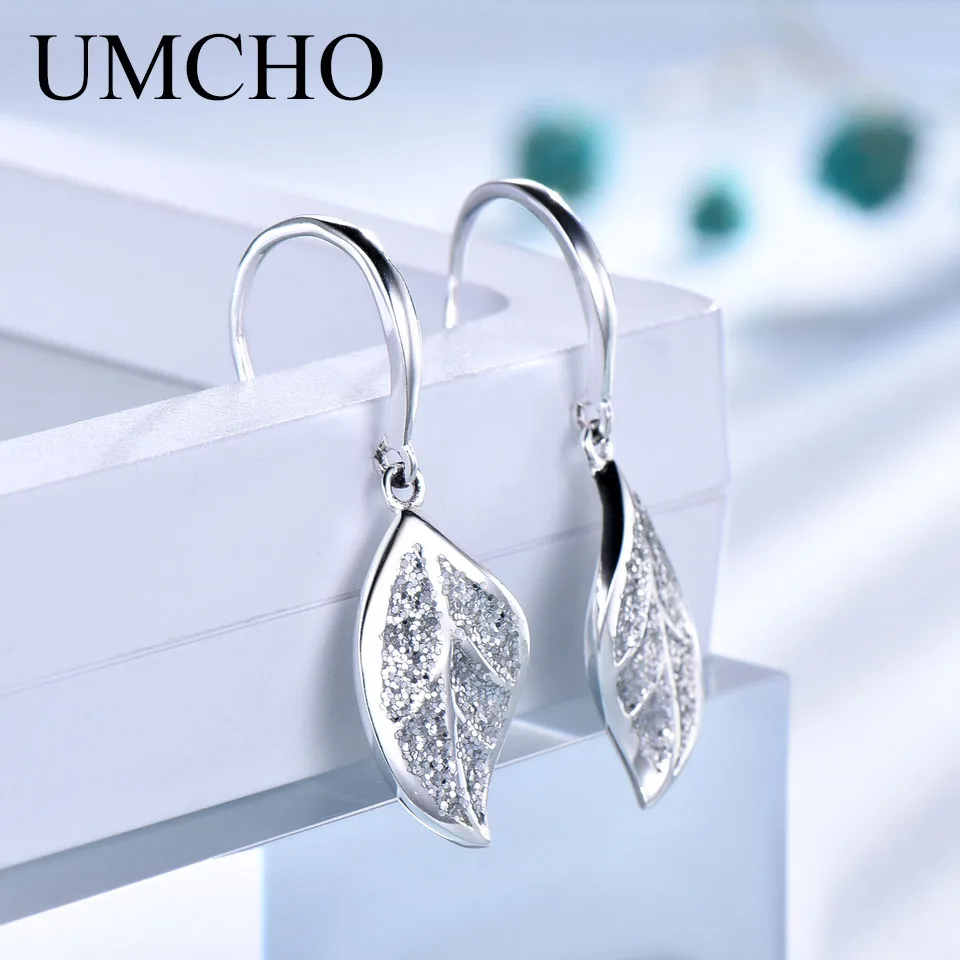 Женские серьги-капельки UMCHO из стерлингового серебра 925 пробы, элегантные романтические серьги в форме листа, модные ювелирные изделия из стерлингового серебра