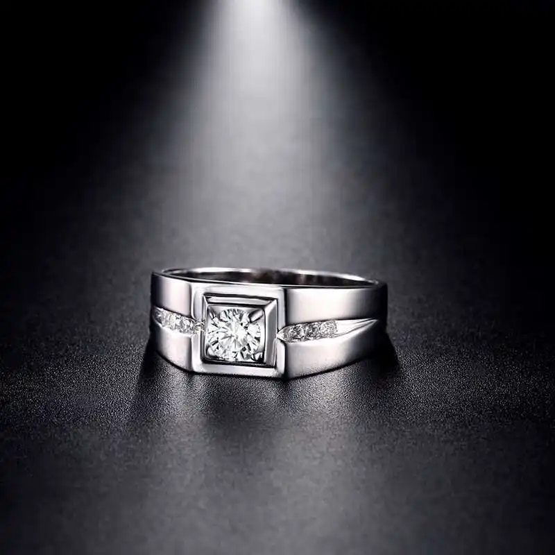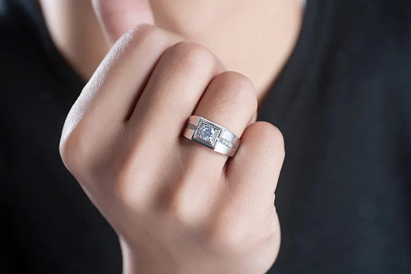 Кольцо мужское из серебра 925 пробы с бриллиантом 1,0 карата