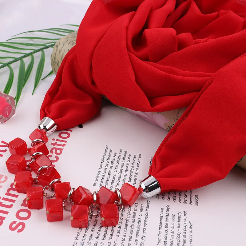 Шарф-ожерелье женский, шарф в мусульманском стиле, веснаосень, простые бусины