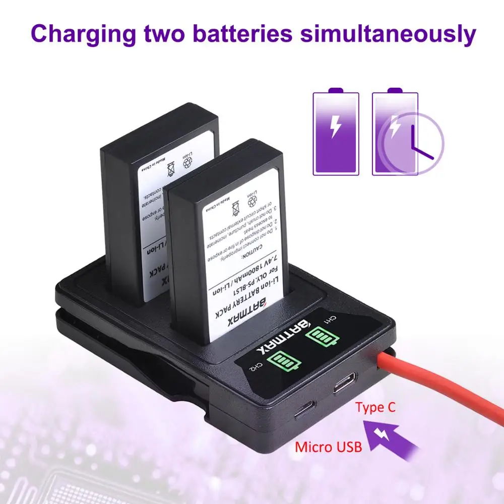 BatmaxPS-BLS1 PS BLS1 PSBLS1Аккумулятор+Новое светодиодное двойное зарядное устройство USB с портом типа CДляOlympus PEN E-PL1 E-PM1 EP3 EPL3 Evolt E-420 E-620 E-450 E-400 цифровые SLR камеры