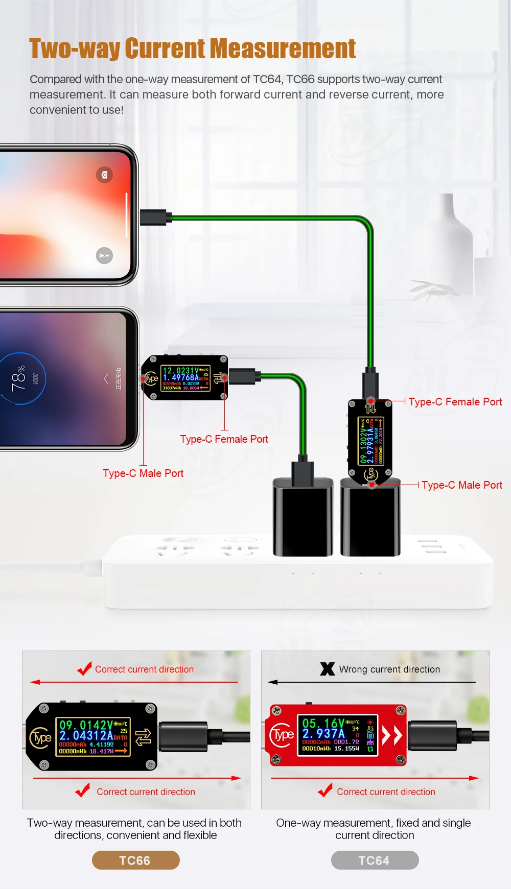 TC66TC66C TC64 Type-C PD триггер USB-C Вольтметр Амперметр Напряжение 2-сторонний измеритель тока мультиметр зарядное устройство PD аккумулятор USB Тестер