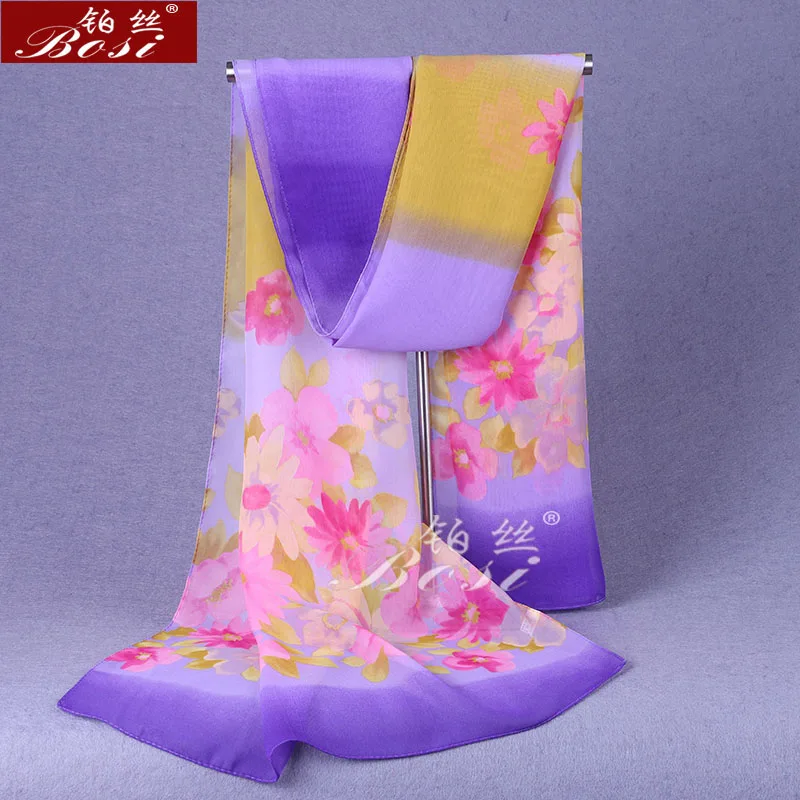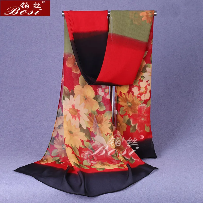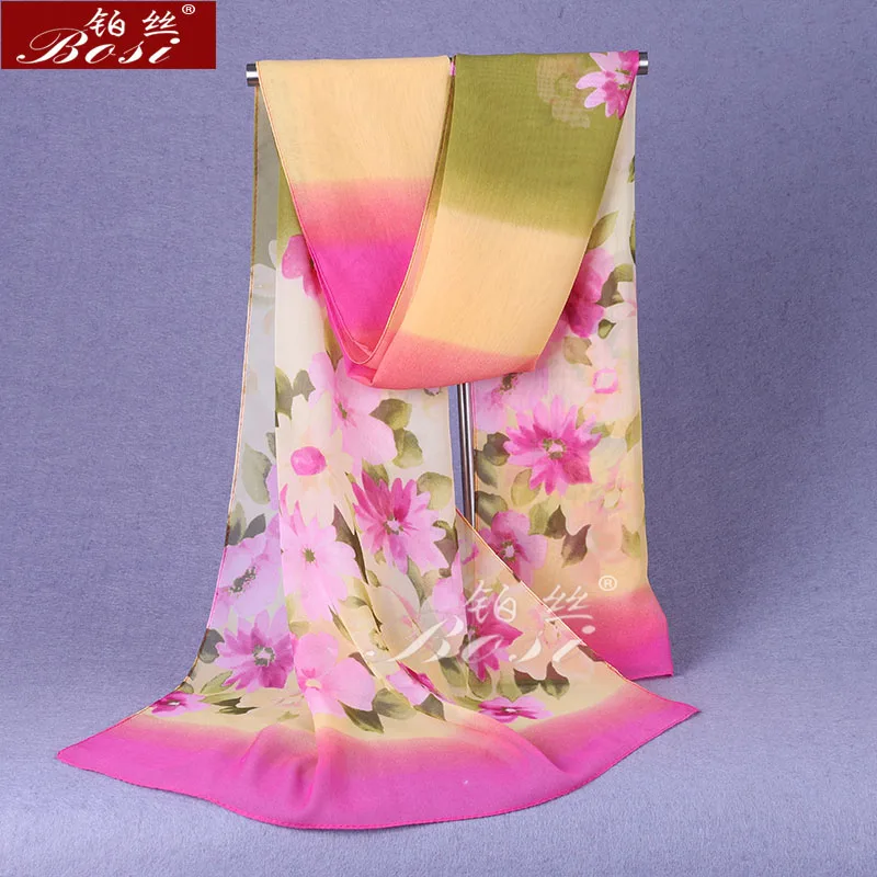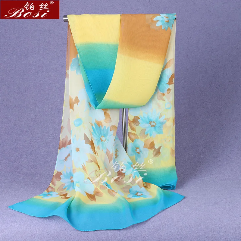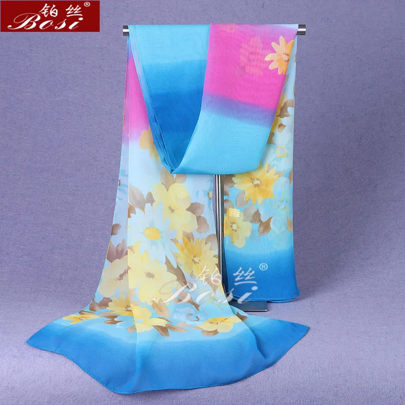 BOSI 2020 Новый шифоновый шарф с цветочным принтом, шаль, роскошные женские модные синие шарфы, Дамский хиджаб, градиентные шарфы, аксессуары
