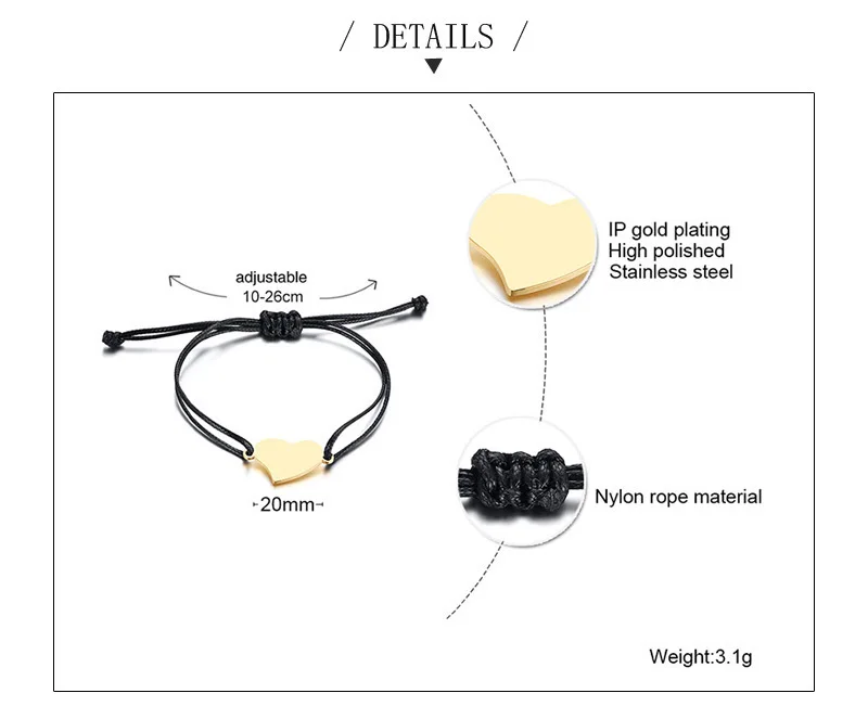 Женский браслет с гравировкой Love Heart, регулируемый браслет ручной работы на заказ