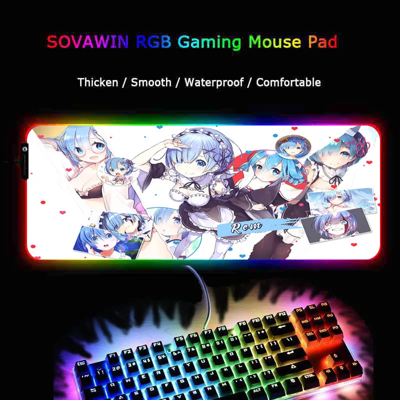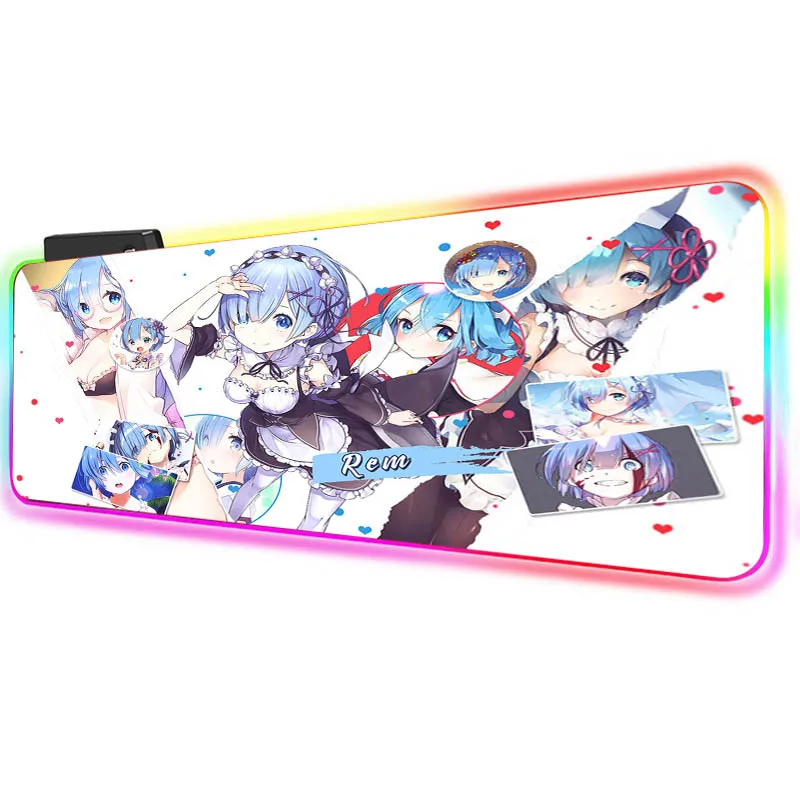 Большой игровой коврик для мыши Mairuige Re Zero Rem RGB, светодиод...