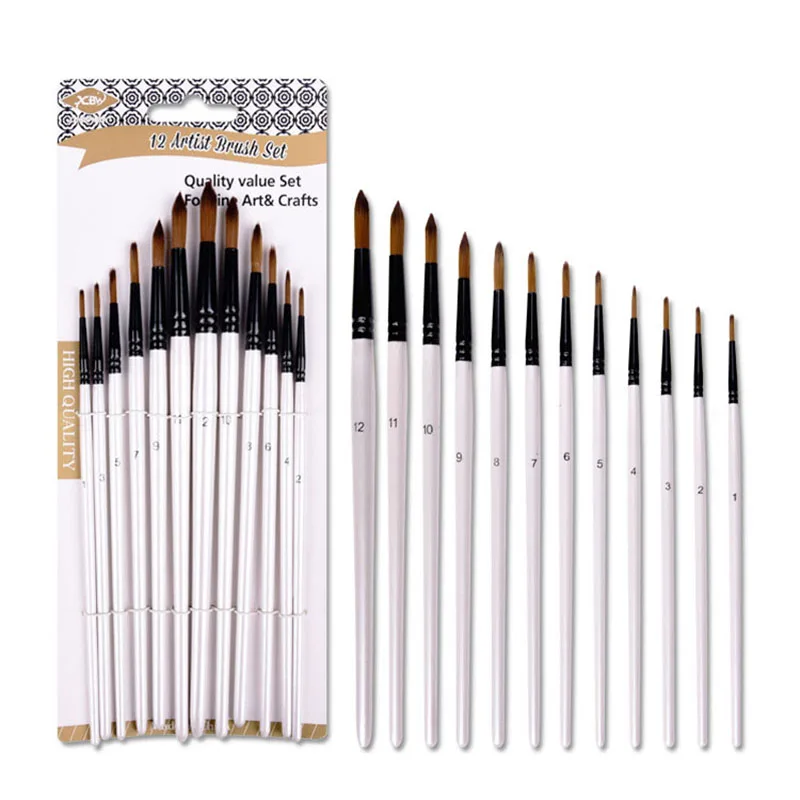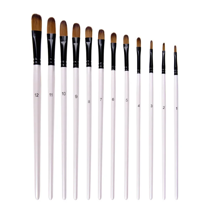 Набор из 12 шт. перламутровая двухцветная нейлоновая ручка для масляной живописи с длинным березовым стержнем, ручка для рисования маслом, круглая ручка для акварели, доступная ручка