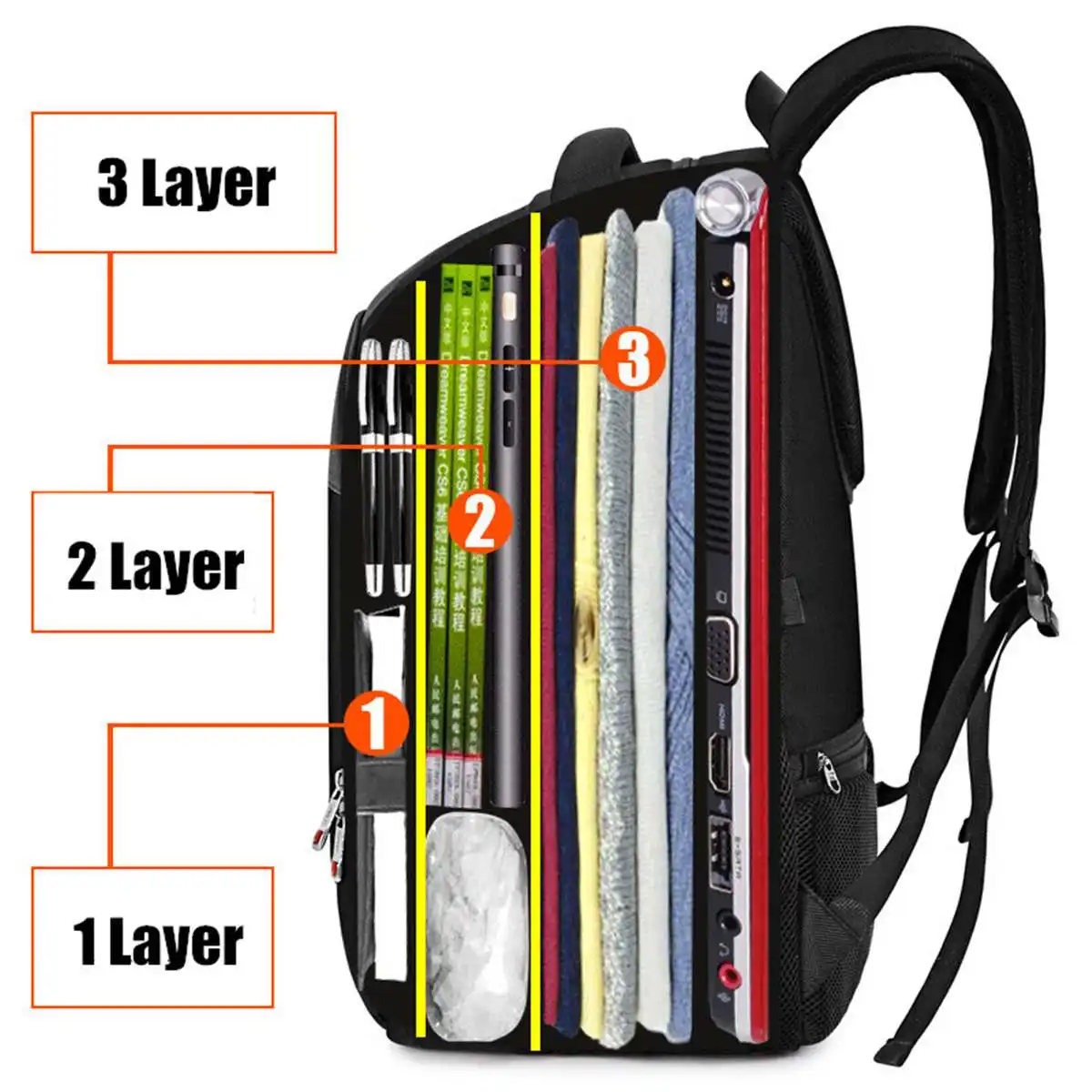 -Имеет 3-х слойное отделение на молнии, 2 боковых сетчатых кармана и Противокражные задние карманы на молнии. Подходит для ноутбука до 16 дюймов, iPad, мобильного телефона, кошелька, книг, одежды, всего необходимого на открытом воздухе.