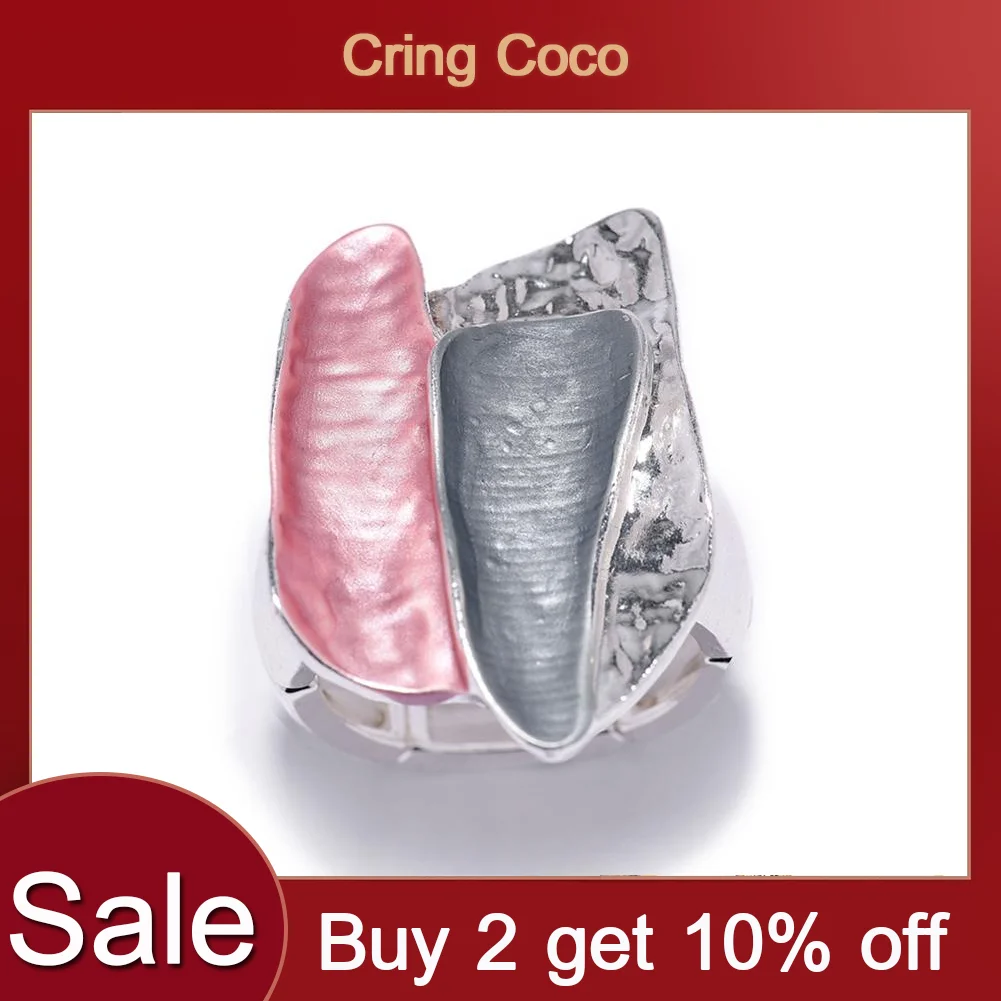 Кольцо женское Cring Coco, из металлического сплава, с розовой эмалью, регулируемое