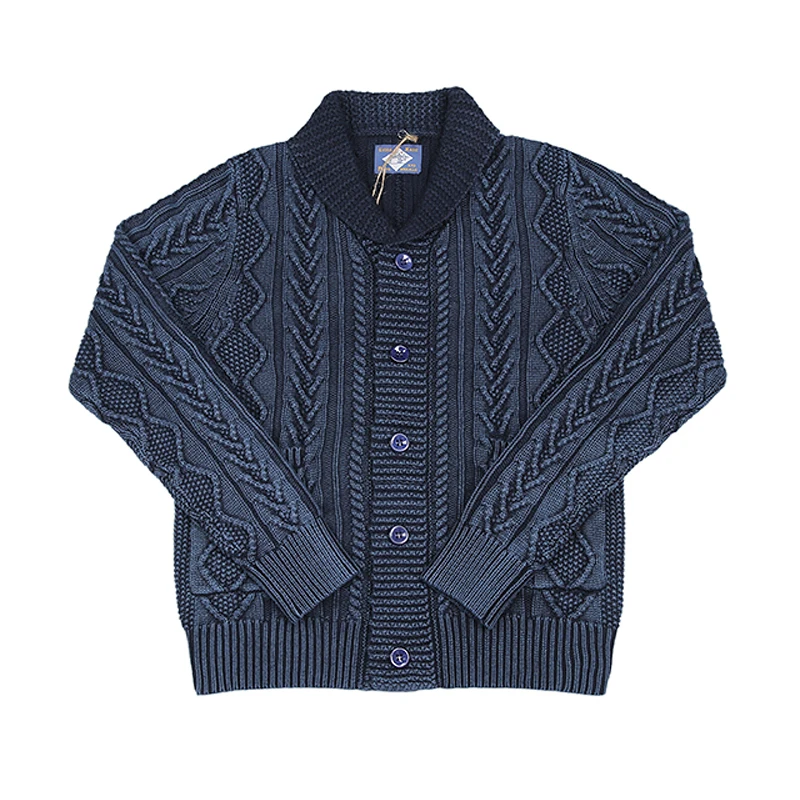 Мужской Жаккардовый кардиган из хлопка индиго с воротником-шалью BOB DONG