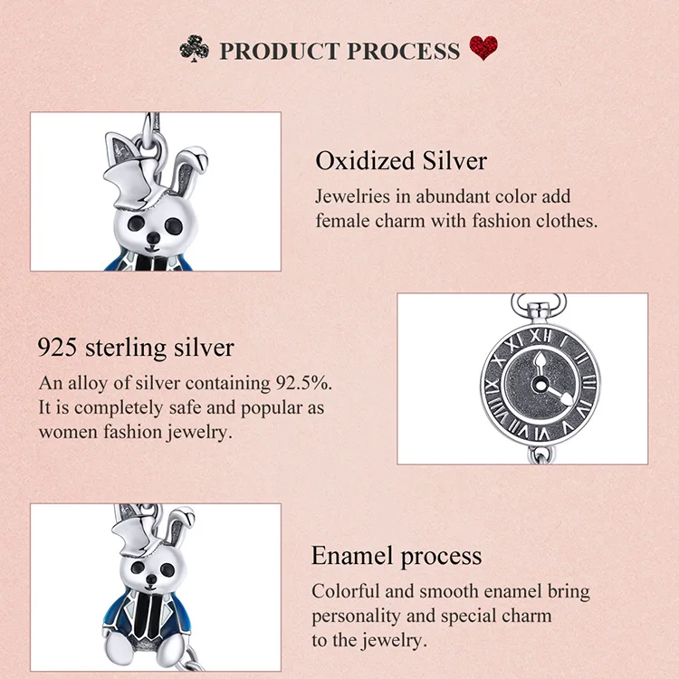 Длинная цепочка для браслета bamoer SCC1443, оригинальная подвеска в виде волшебного леса, приключений, кролика и часов