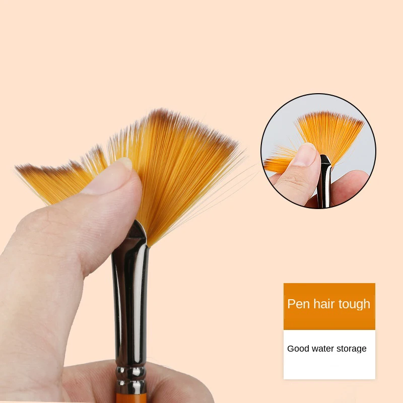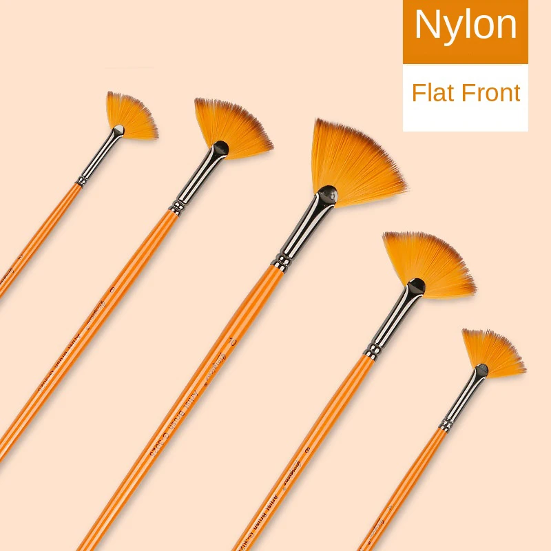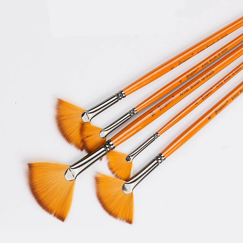 5 шт. набор двухцветных нейлоновых вееров для волос shap оранжевая Длинная Деревянная палка ручка для рисования маслом Акриловая кисть веер для воды Мел Художественные принадлежности
