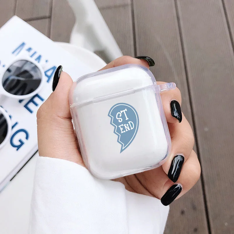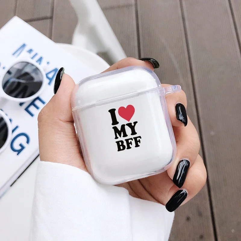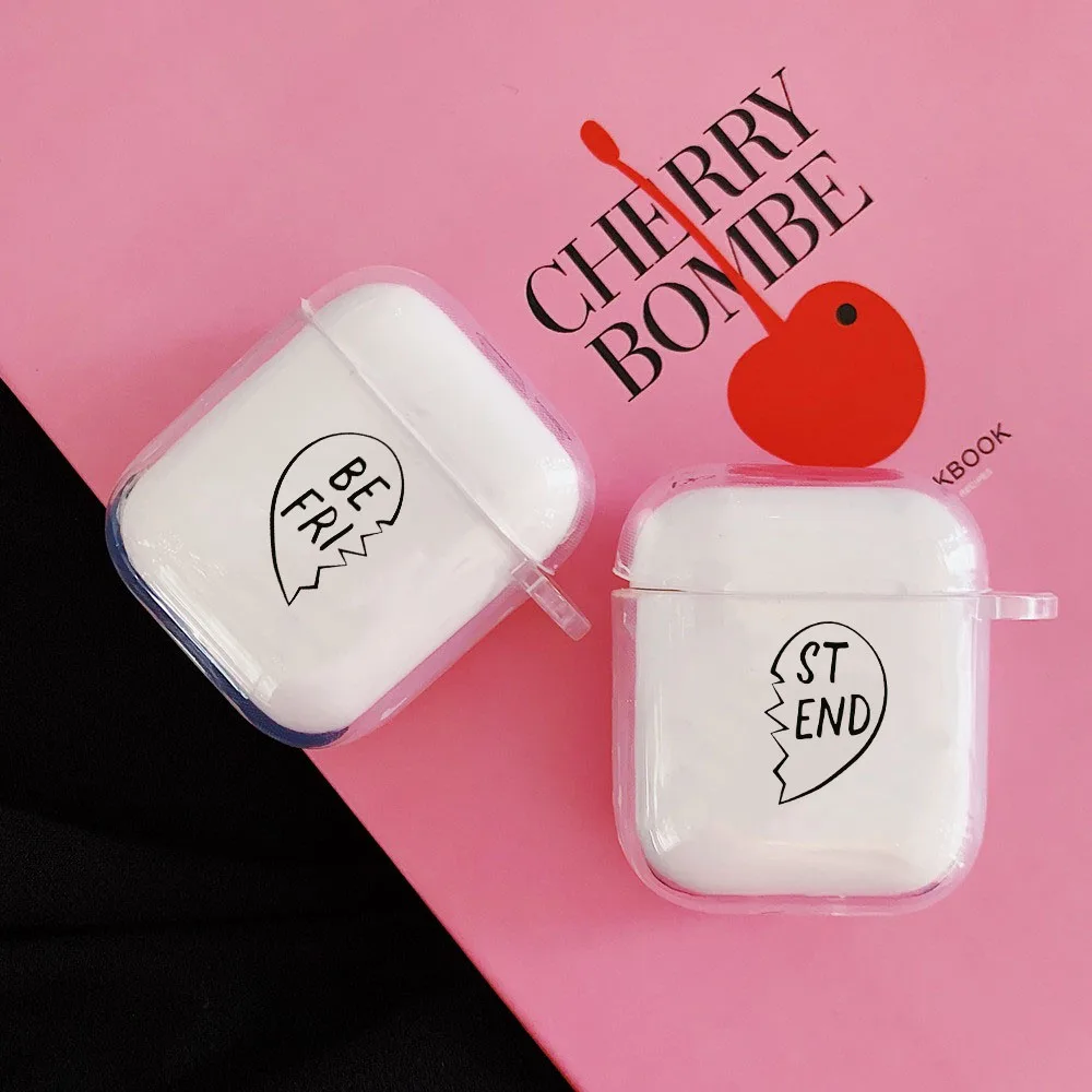 Милый Bff принт "наушники" чехол для Airpods 1 2 лучшие друзья мягкий TPU прозрачный чехол для беспроводных Bluetooth наушников чехол Coque Funda Примечание:
