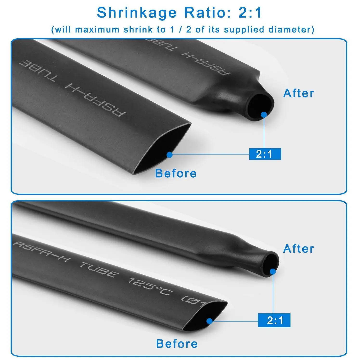 127 шт Черный всепогодный термоусадочные трубки, электрические кабе...