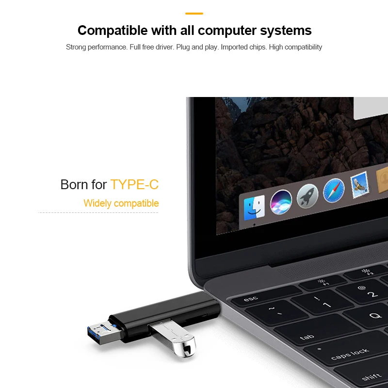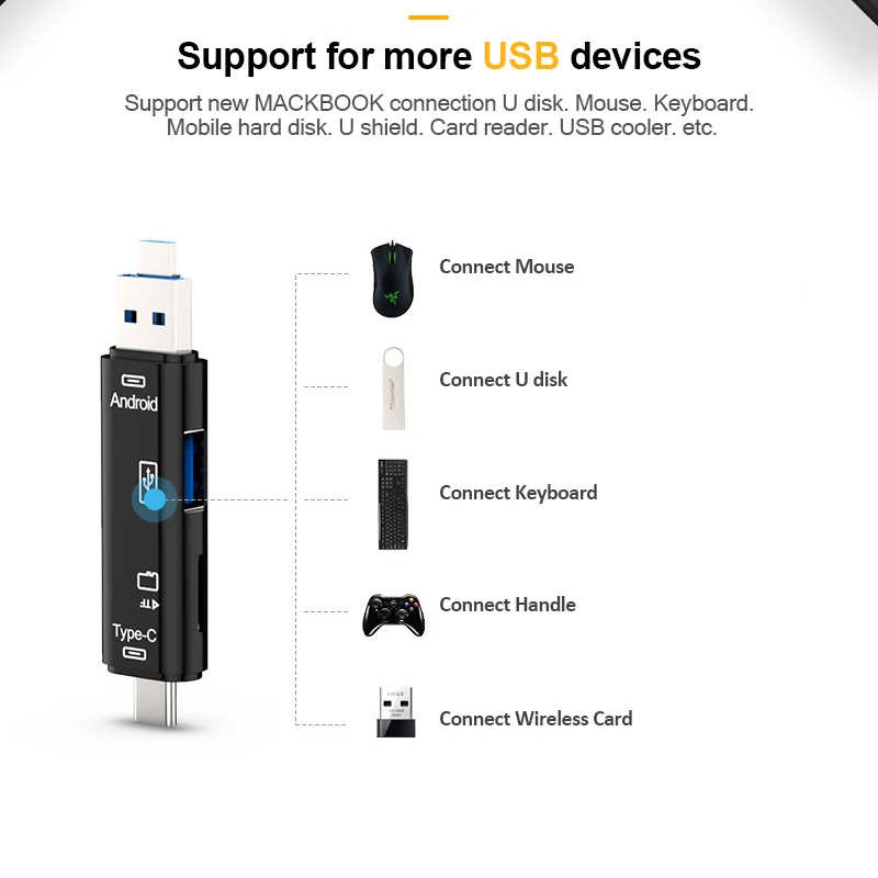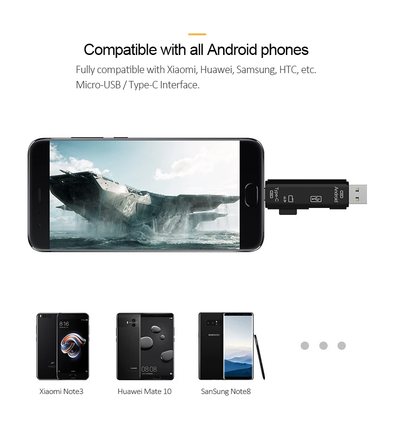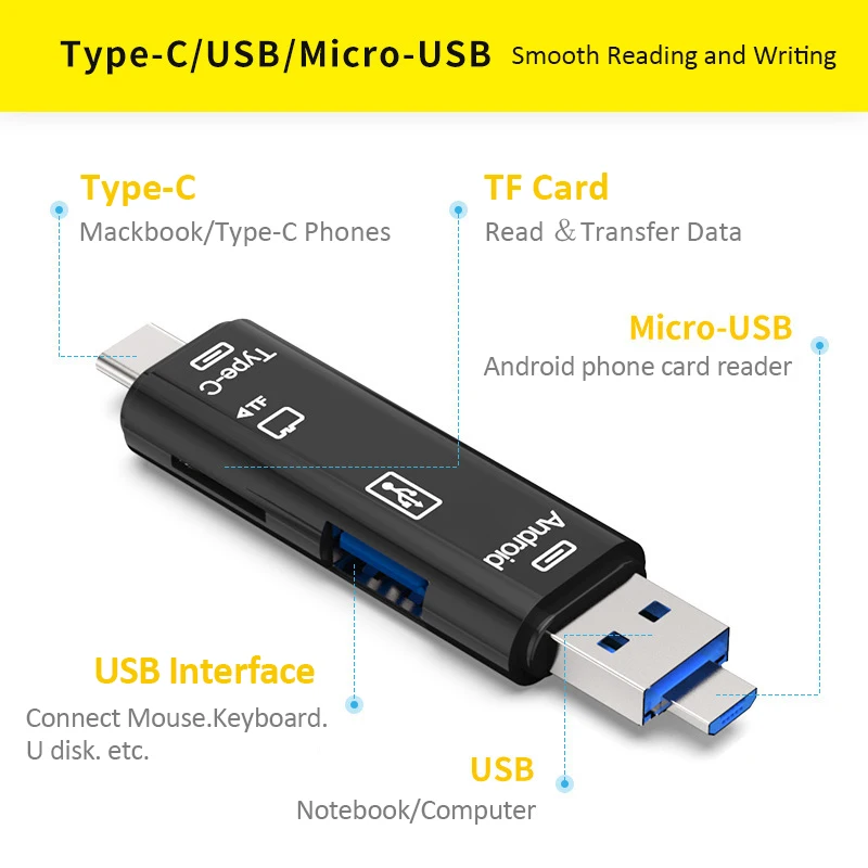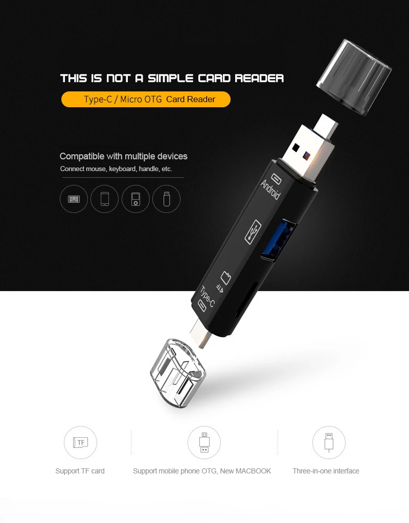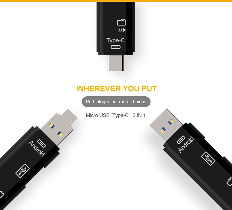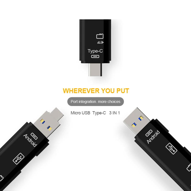 OTG кард-ридер 3-в-1 Ginsley, устройство для чтения карт памяти типа C, MicroUSB и USB, высокоскоростной Универсальный OTG TFUSB для Android компьютера, переходники