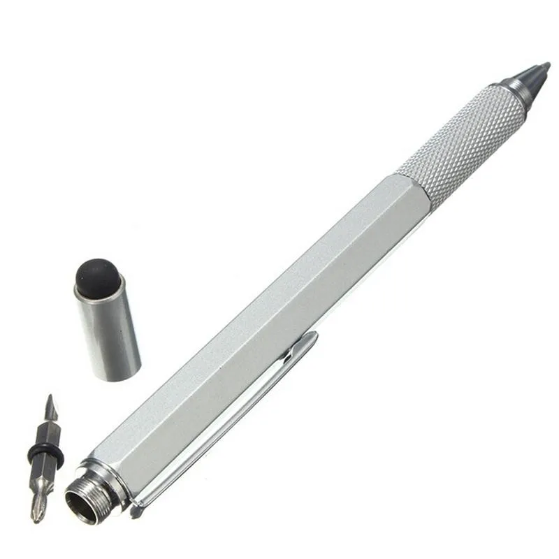 Шариковая ручка-стилус 6 в 1 со спиртовым уровнем, линейка, отвертк...