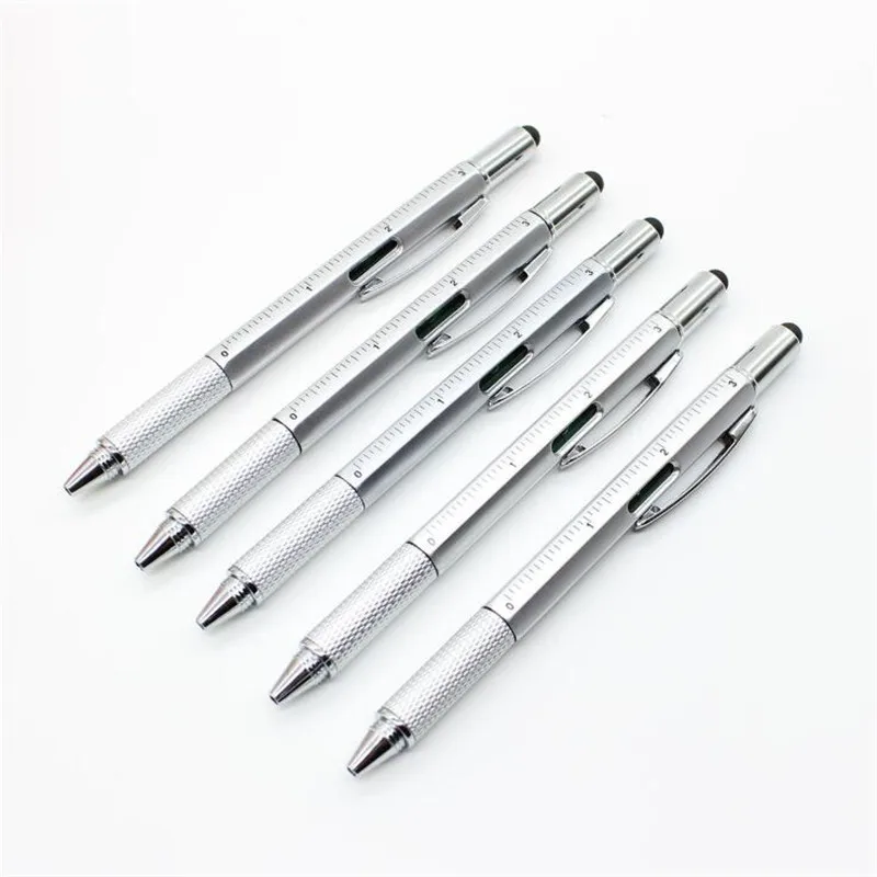 1 шт. 6 в 1 сенсорный шариковый стилус с линейкой спиртового уровня отвертка инструмент офисные и школьные принадлежности случайный цвет