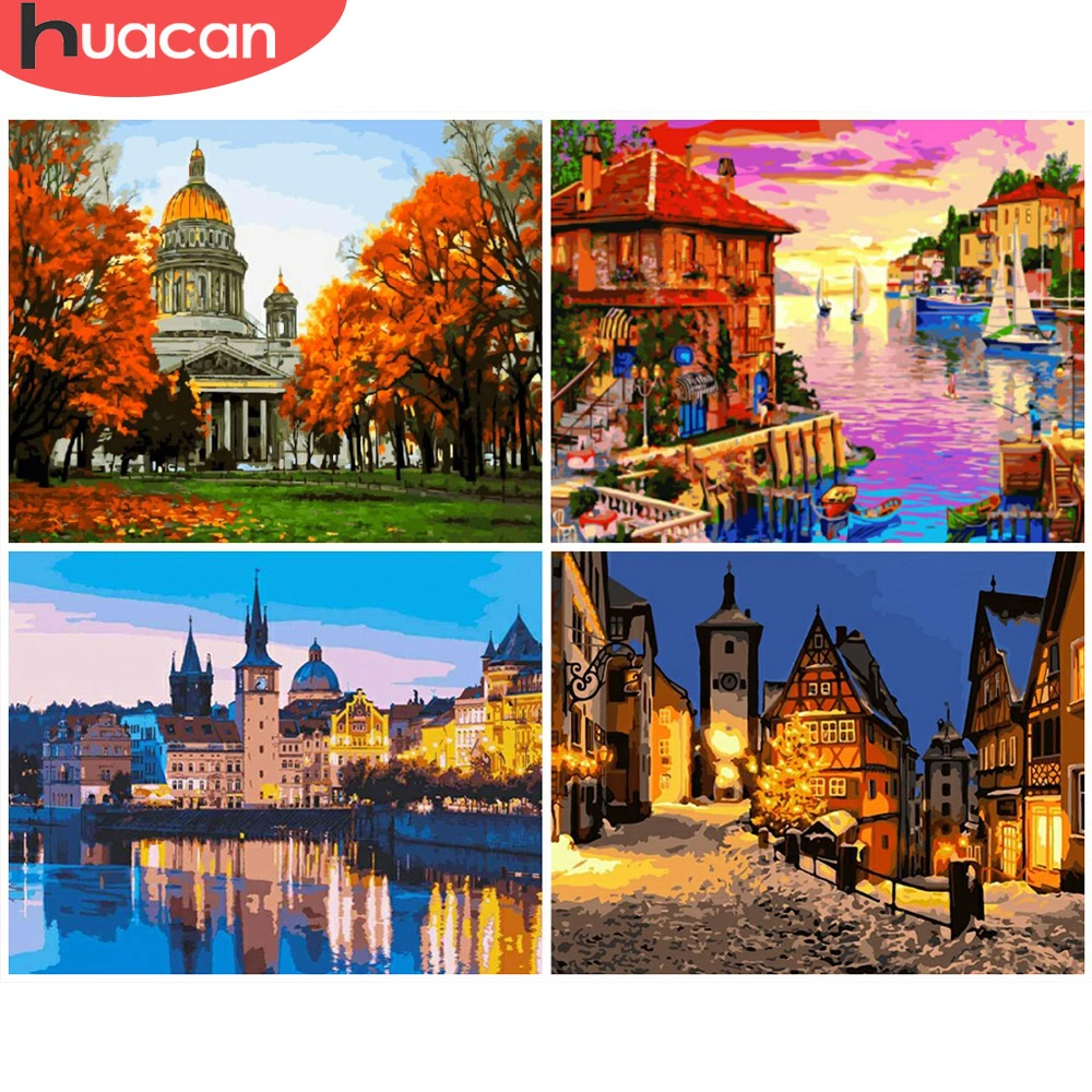 HUACAN DIY картинки по номеру город пейзажные наборы домашний декор...