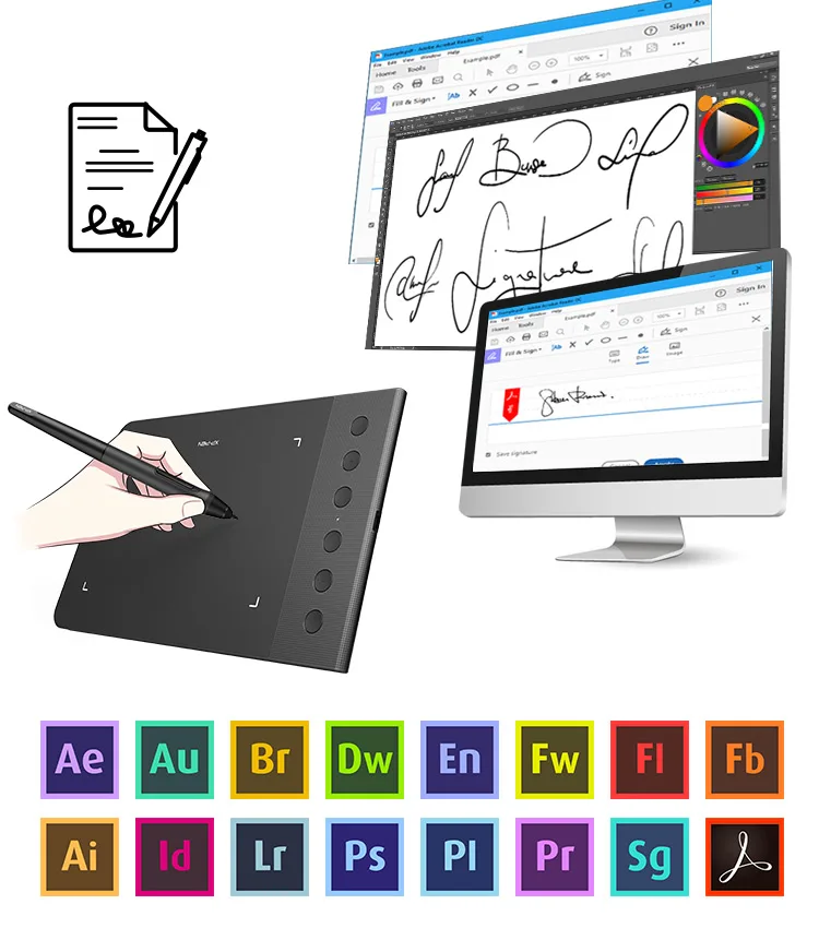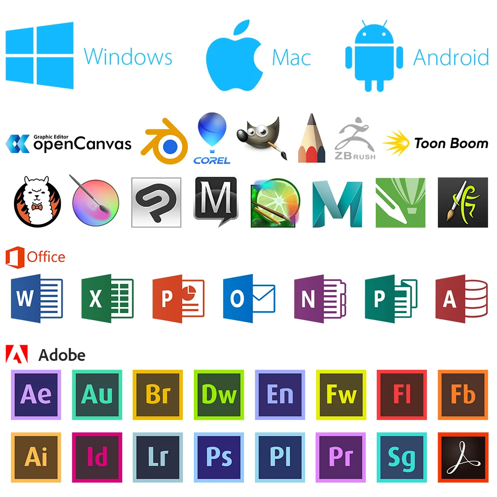 Совместимость с Windows®10/8/7, Mac OS X®10,10 и выше. Также совместим с большинством основных дизайнерских программ, таких как Photoshop®, SAI®, Художник®, Illustrator®, Клип студия®И многое другое.