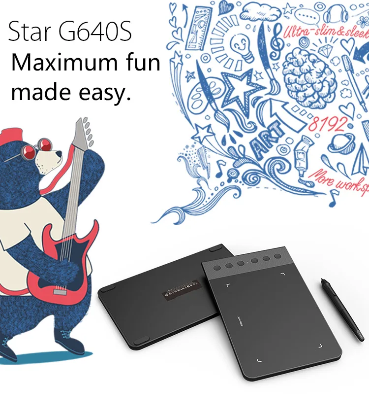 Больше пространстваG640S планшет для рисования – это больше пространства для рисования и игр: рабочая область 6.5*4 дюймаТолщина G640S всего 9мм, что позволяет ему быть портативным и легким в использовании.