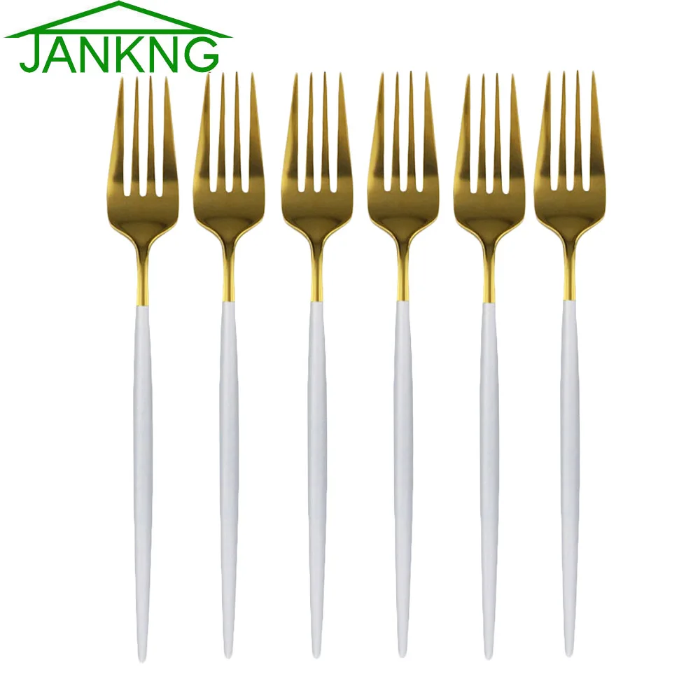 6 шт. белая Золотая столовая вилка 304 нержавеющая сталь столовые приборы вилка в западном стиле Свадебные гостиничные свадебные принадлежности столовая посуда зеркальная посуда