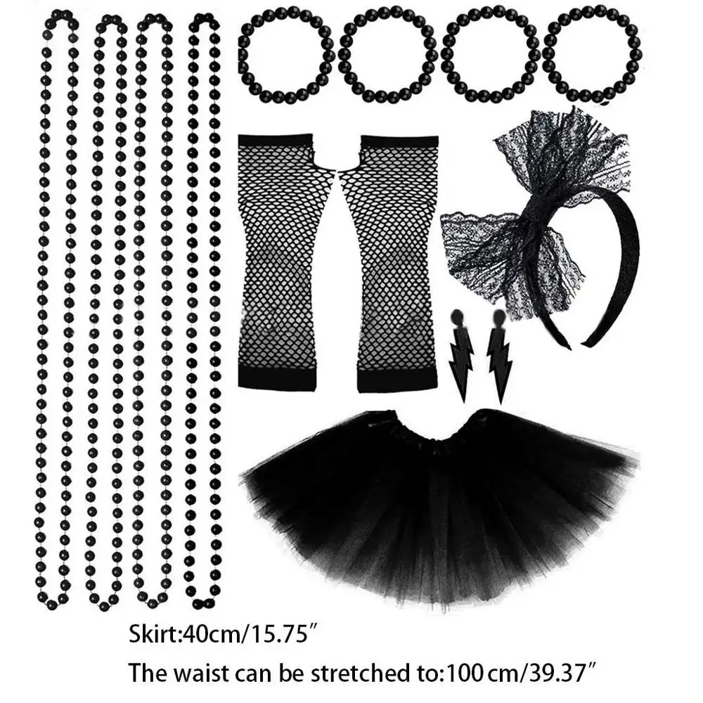 Сетчатые перчатки Гетры 42 см Платье-пачка, длина: 41 см, диапазон талии: 68-120 см Ожерелье из бисера, неоновое, разные цвета (по периметру: 83 см) Набор пожалуйста, прежде чем сделать покупку, смотрите фотографии шоу