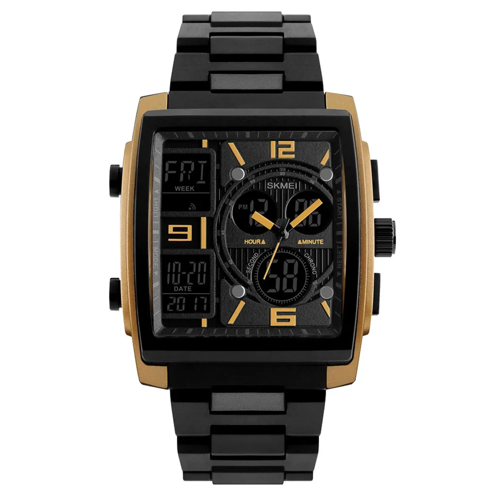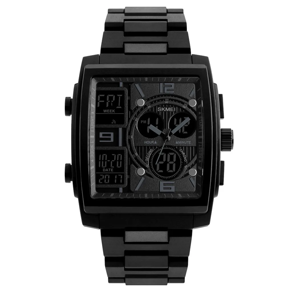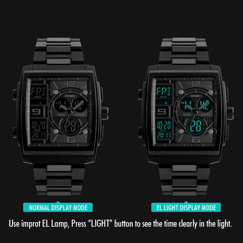 Бренд: SKMEI Авторизован владельцем бренда, гарантия качества Мягкий ПУ резиновый ремешок для часов Чехол для часов из высококачественного ПК Стекло для часов из смолы высокой четкости Пряжка для часов из нержавеющей стали Механизм: кварцевый аккумулятор Стильный Прямоугольный циферблат Аналоговый и цифровой дисплей Многофункциональность: время/дата/Будильник/неделя/секундомер EL светильник вой дисплей, видимый в темноте Набор из 3 часовых поясов, красивый дизайн Поддержка настройки ч Водонепроницаемость 50 м. Не нужно снимать во время плавания (избегайте горячей/теплой воды) Хороший подарок для себя и друзей, добро пожаловать за покупкойСпецификация: