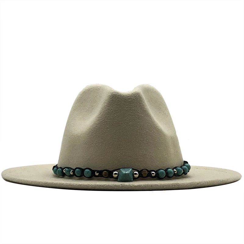 Новая шерстяная фетровая шляпа для женщин с широкими полями, Дамская твидовая белая кепка для джаза, женская элегантная зимняя шапка с изумрудным декором