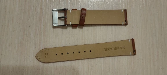 хороший ремешок. кожа или нет - позже посмотрим... недостаток скажу сразу: не прострочен по краю, велика вероятность отслоения верха и низа.