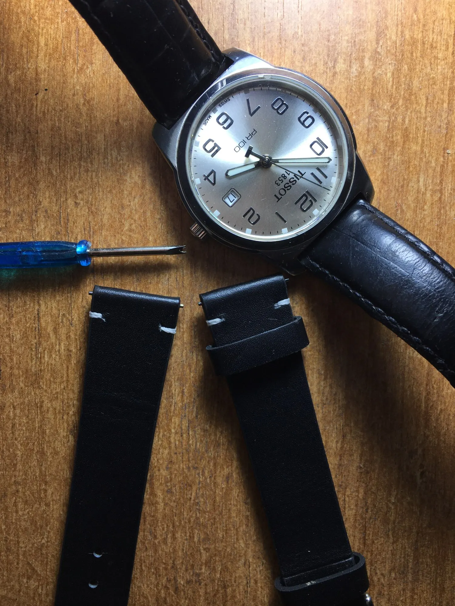 Пришла посылка очень быстро. За неделю. ремешок, конечно не настоящая кожа, а эко-кожа, но сделано добротно. толстый, посмотрим сколько прослужит.