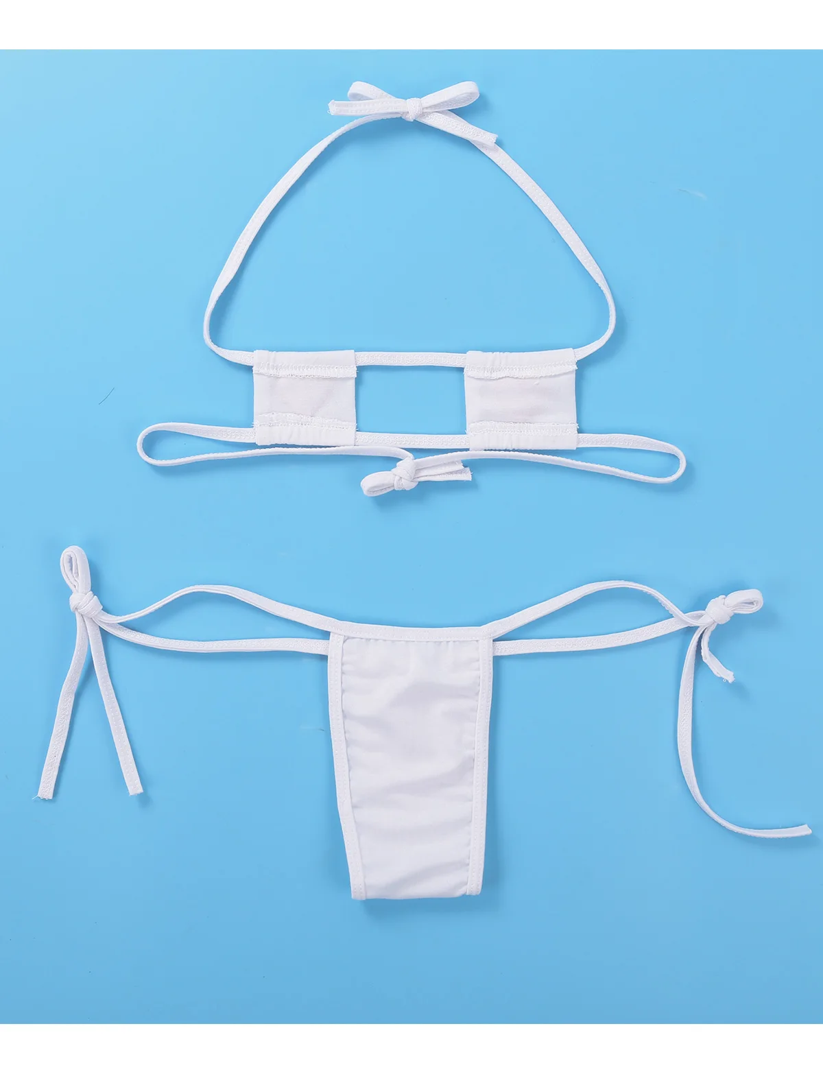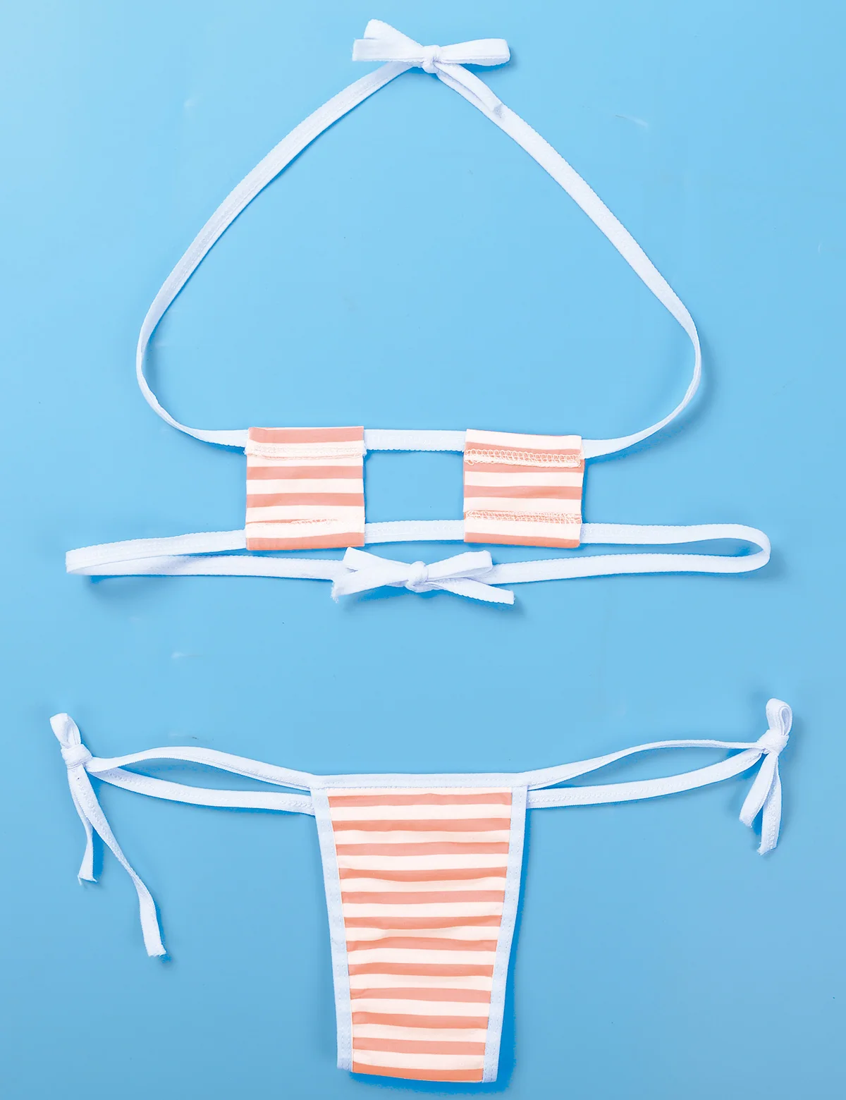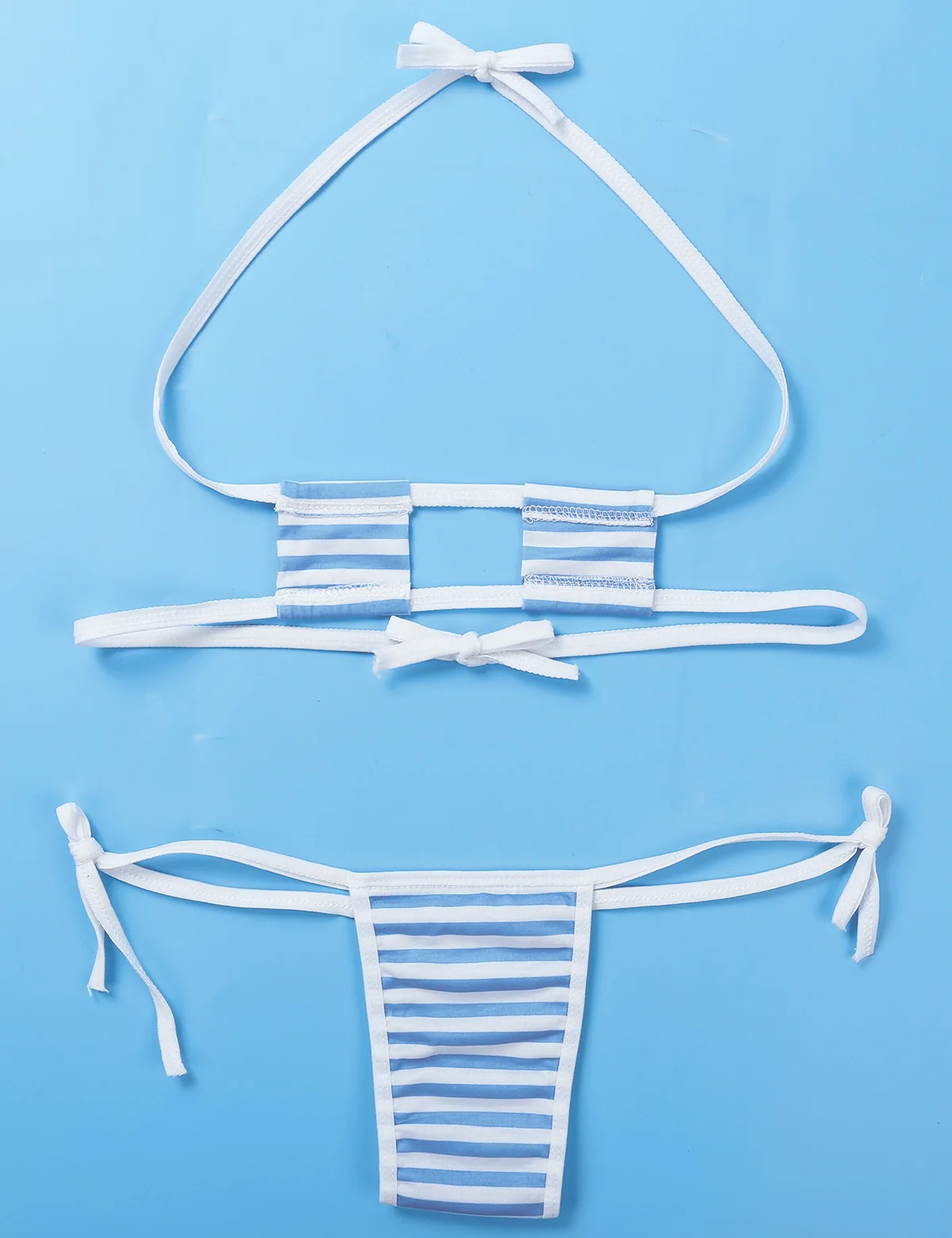 Женский Летний Полосатый квадратный бюстгальтер с вышивкой в виде сердца Kawaii аниме косплей мини набор белья бикини самостоятельно Завязывающийся топ с трусами