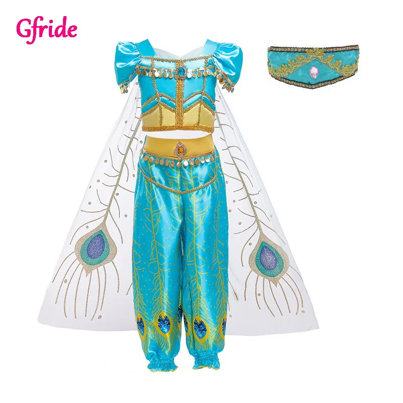 Жасминовое платье принцессы для девочек, Детский костюм Аладдин, Жасмин Детская одежда в арабском стиле праздничная одежда на Рождество и день рождения для детей возрастом от 2 до 10 лет