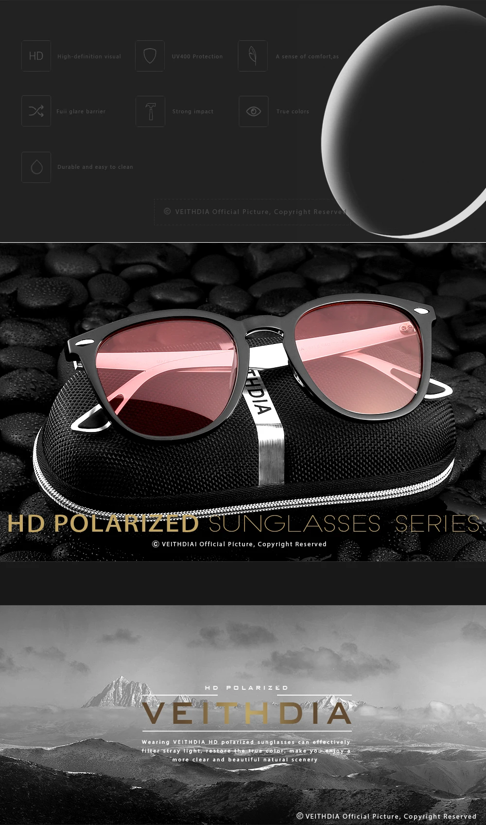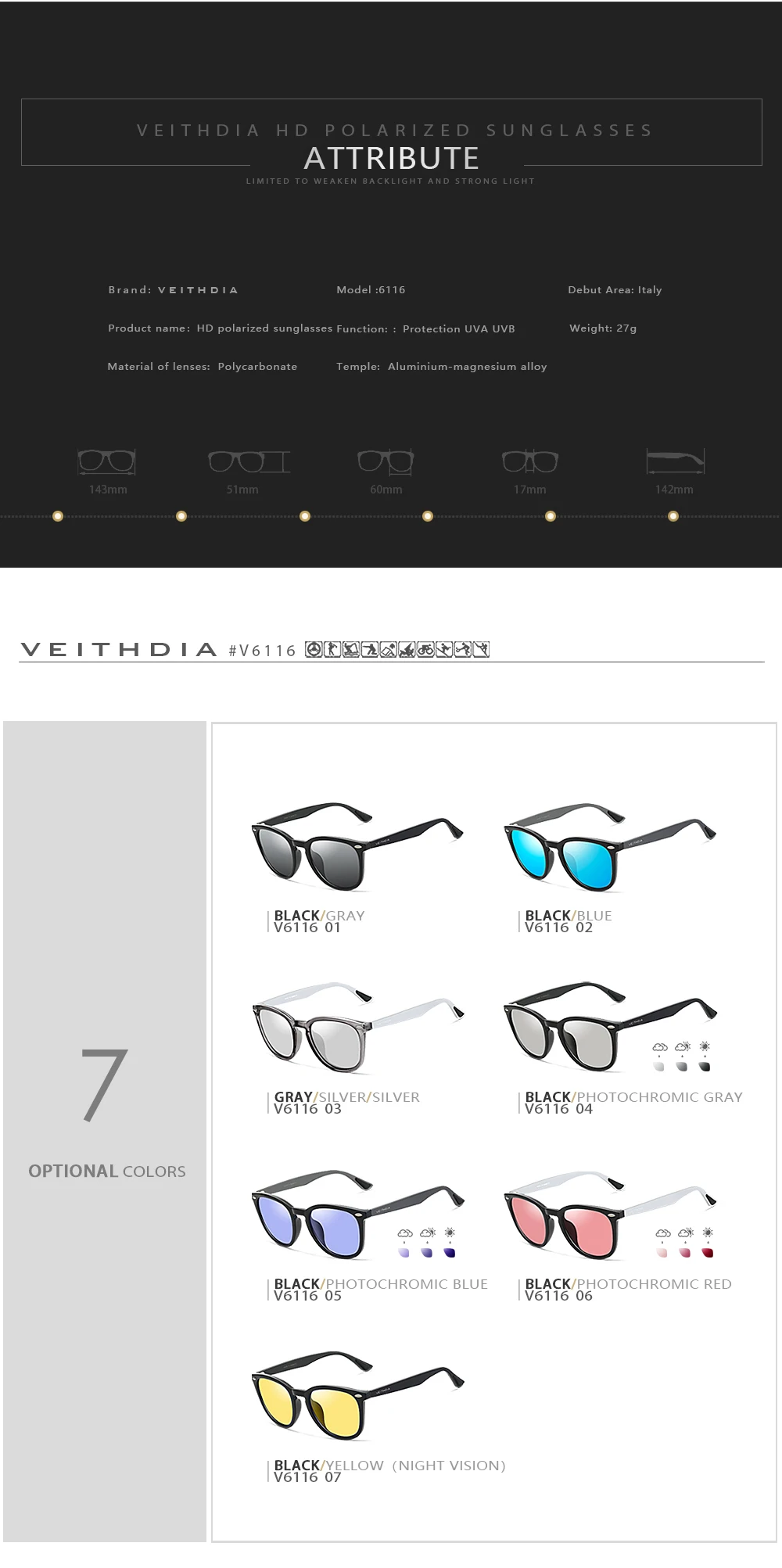 Солнцезащитные очки унисекс VEITHDIA, алюминиевые + TR90 фотохромные зеркальные солнечные очки, аксессуары для женщин, модель 6116,