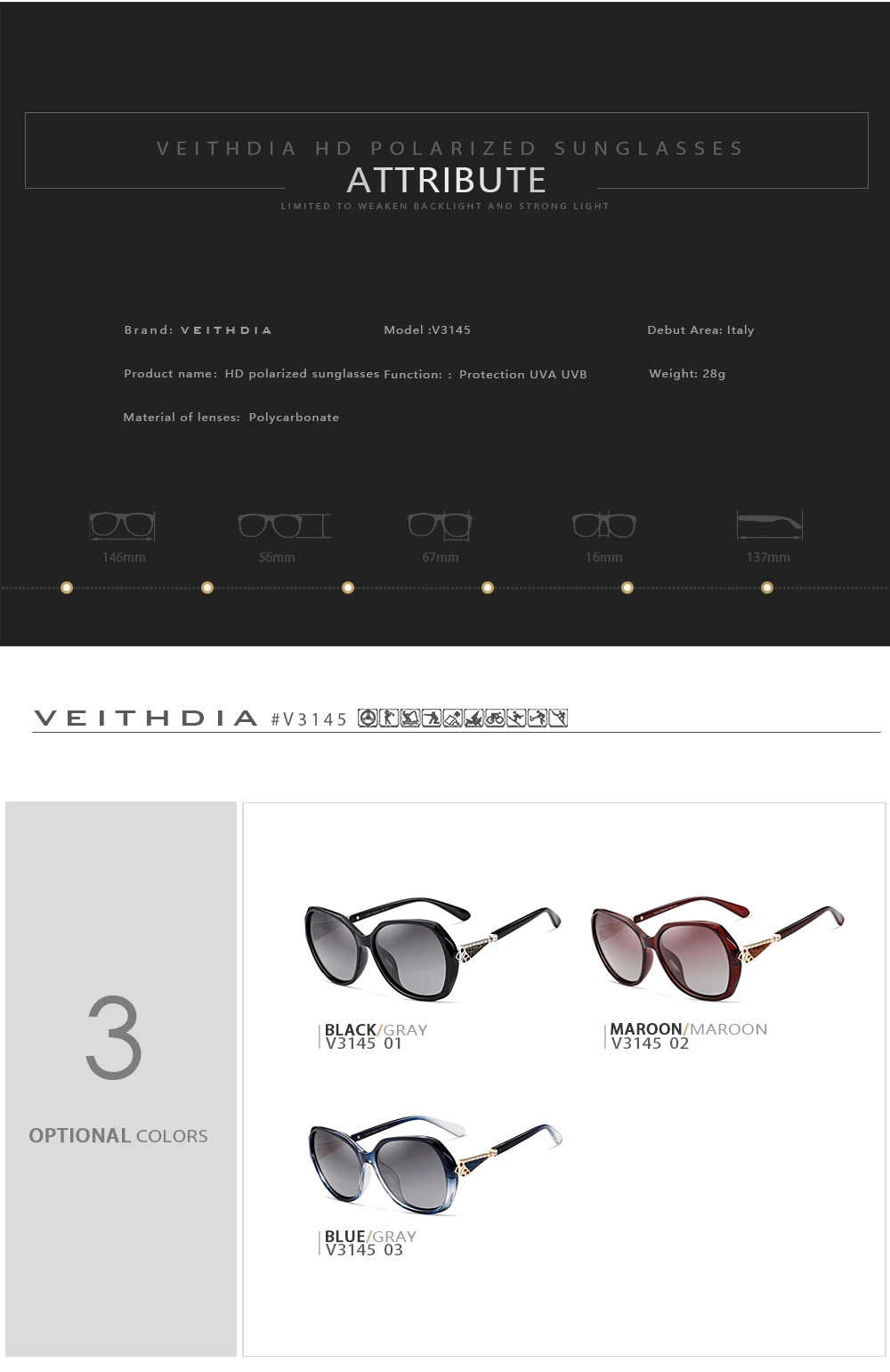Солнцезащитные очки женские VEITHDIA, поляризационные, градиентные, 3145