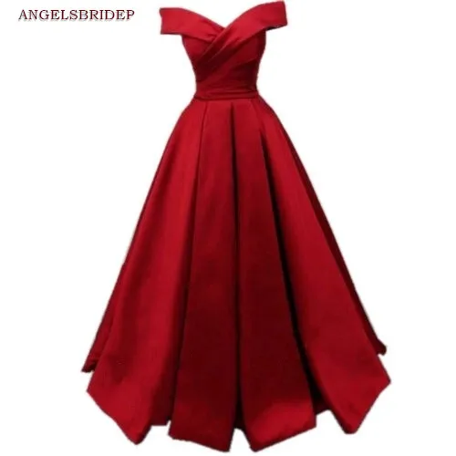 Женское атласное платье до пола, красное платье с V-образным вырезом, с открытыми плечами, для выпускного вечера