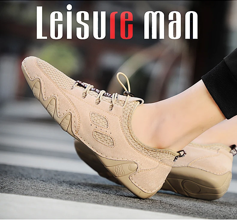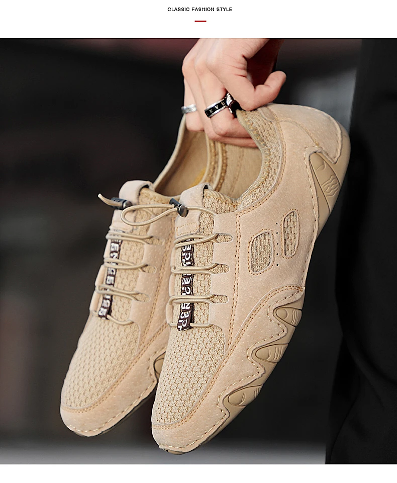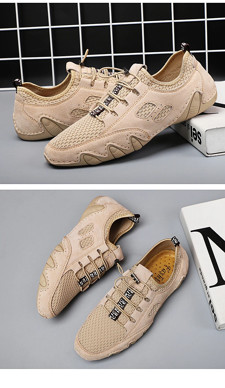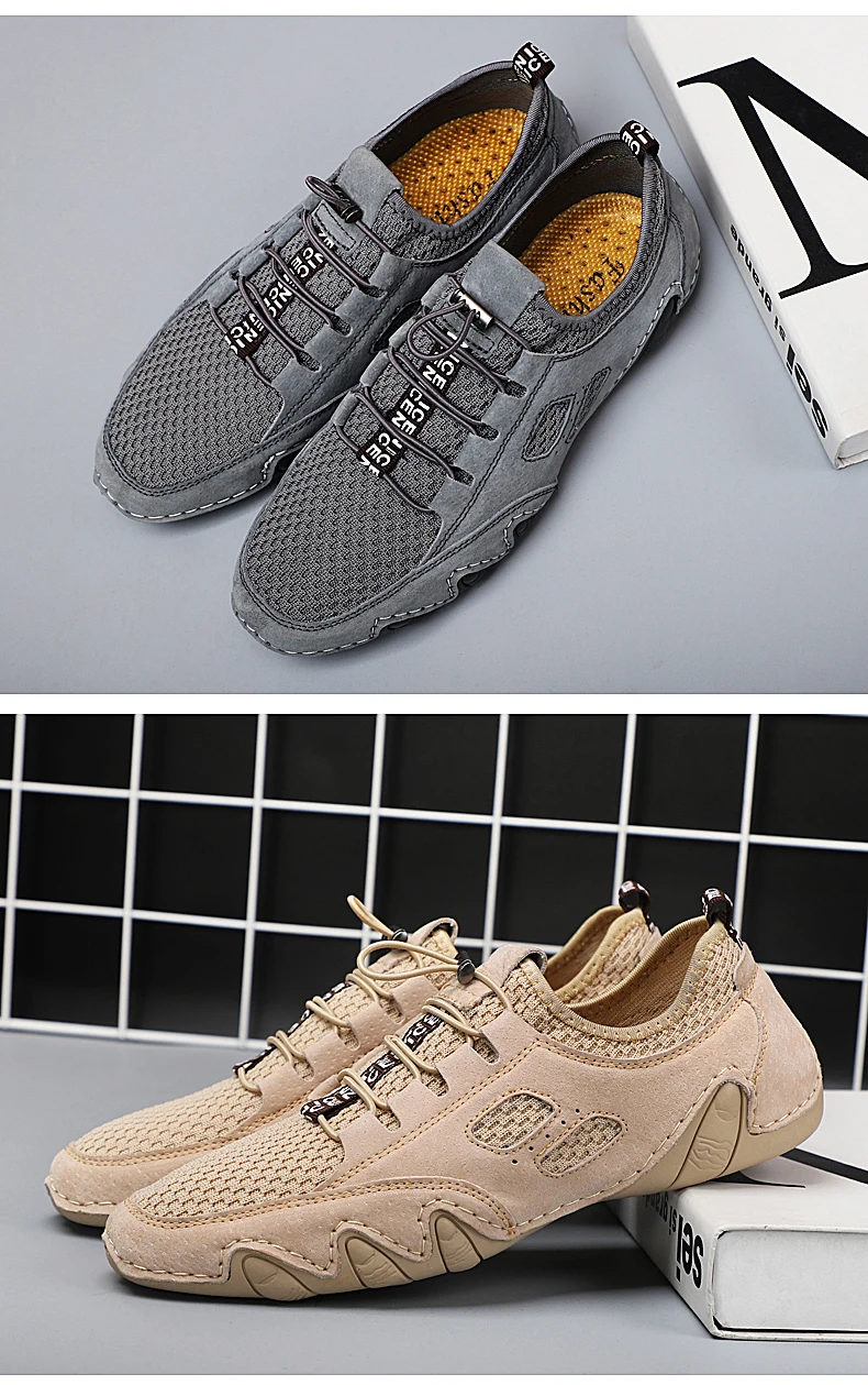 Летняя Новинка; Дышащая мужская Замшевые мужские мокасины на плоской подошве из сетчатого материала + кожаные ботинки кэжуал; Лидер продаж; Мягкая Мокасины, обувь для вождения