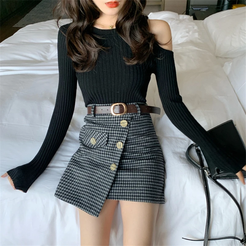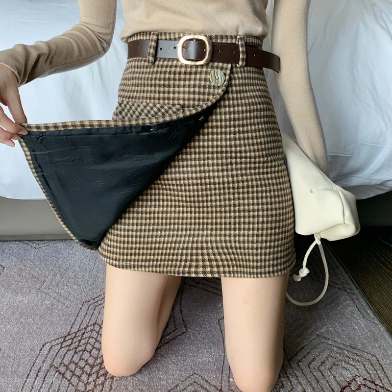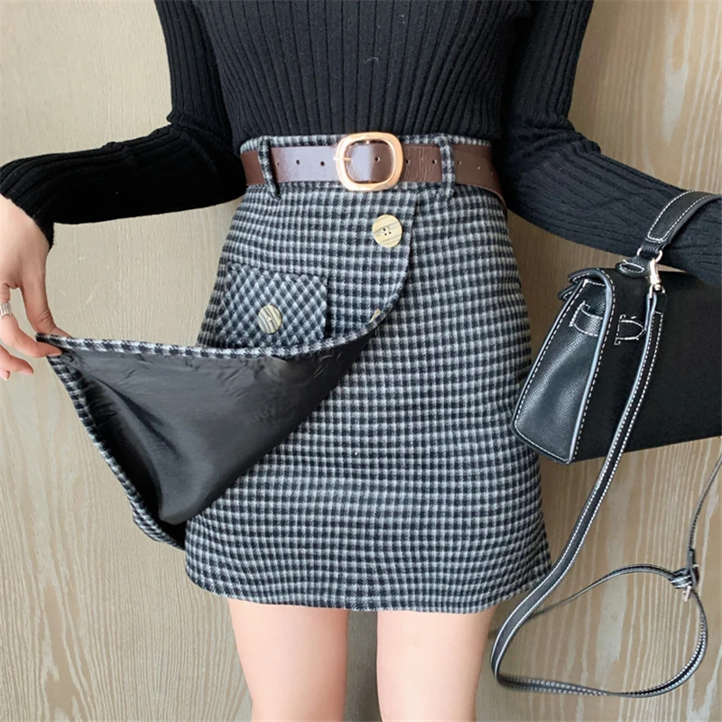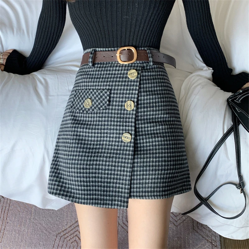 Офисная Женская юбка с поясом 2020 модная Мини клетчатая Женская трапециевидная юбка Весенняя шикарная Элегантная Женская Весенняя юбка на пуговицах с высокой талией