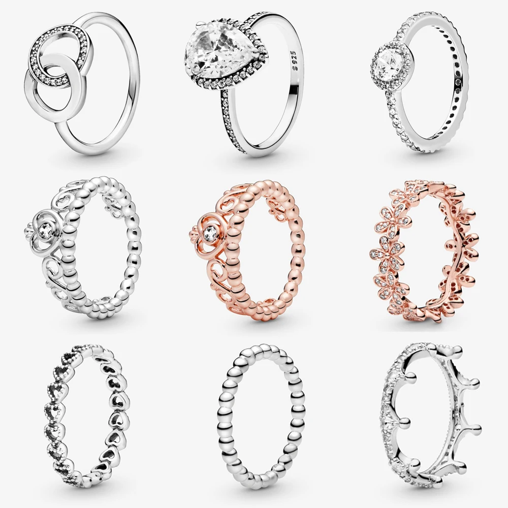 2019 Новинка 925 Серебряные женские кольца сверкающие каплевидные Halo тиара корона принцессы цветок бисером кольцо для помолвки ювелирные изделия