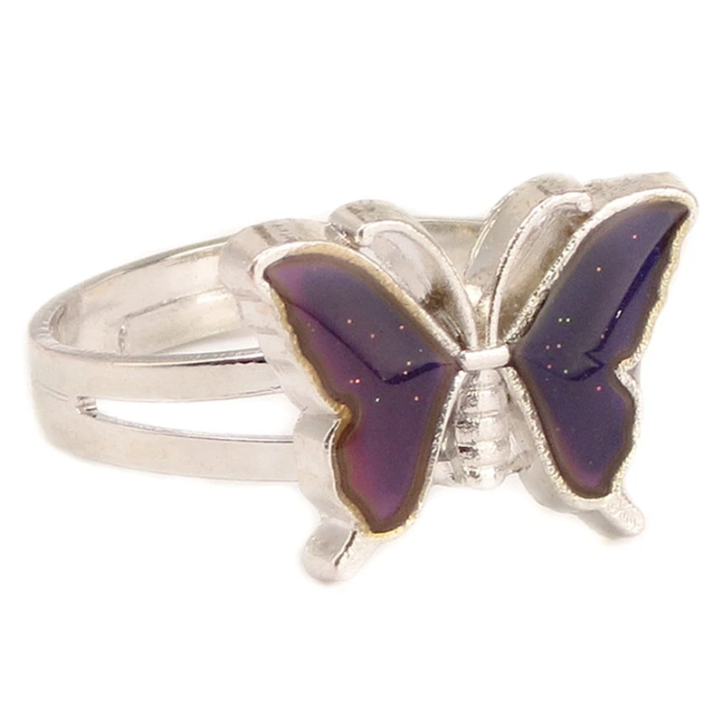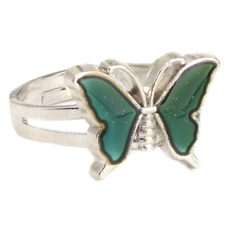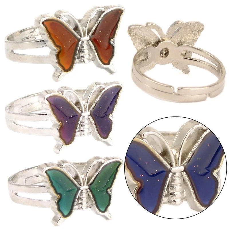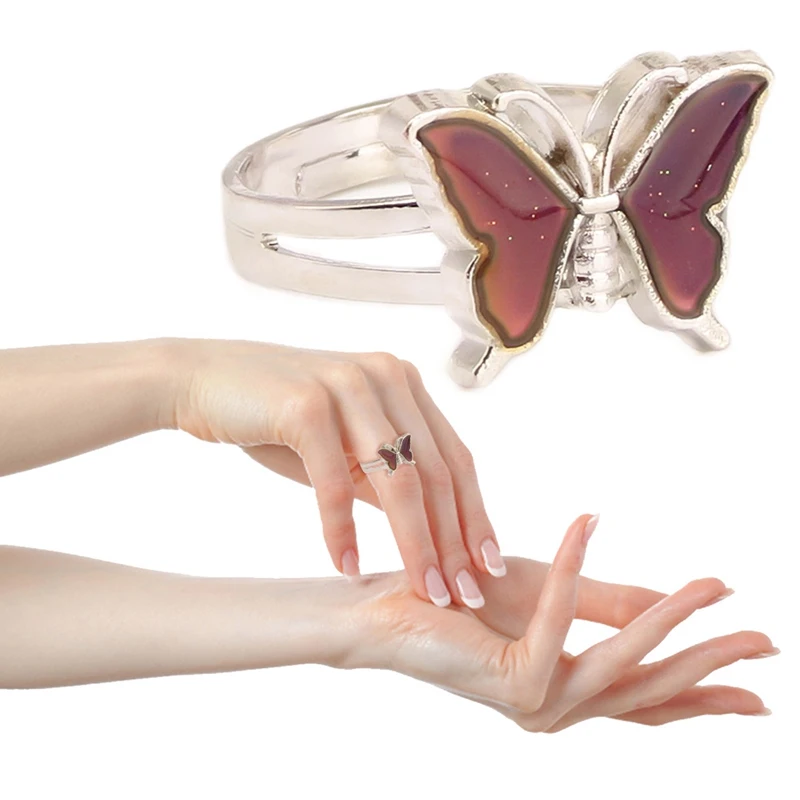 Регулируемые кольца для женщин, серебристого цвета, в стиле ретро, с контролем температуры, в форме бабочки, модное Ювелирное Украшение в подарок