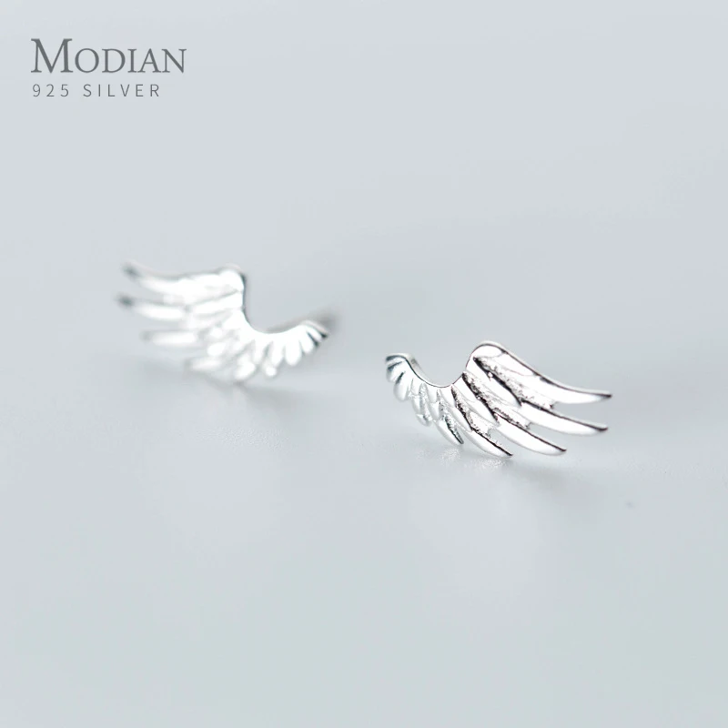 Женские серьги-гвоздики Modian с крыльями ангела, весенние ювелирные изделия из настоящего серебра 2021 пробы 100% пробы, подарочные украшения для девочек и детей, 925