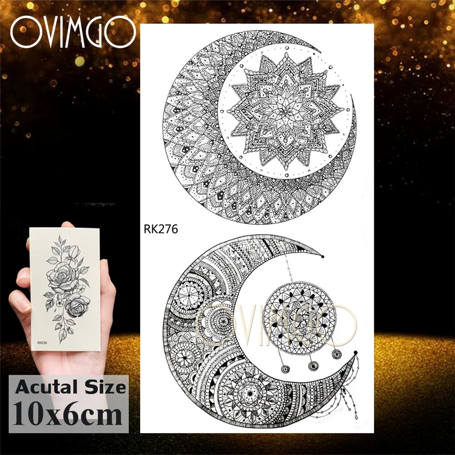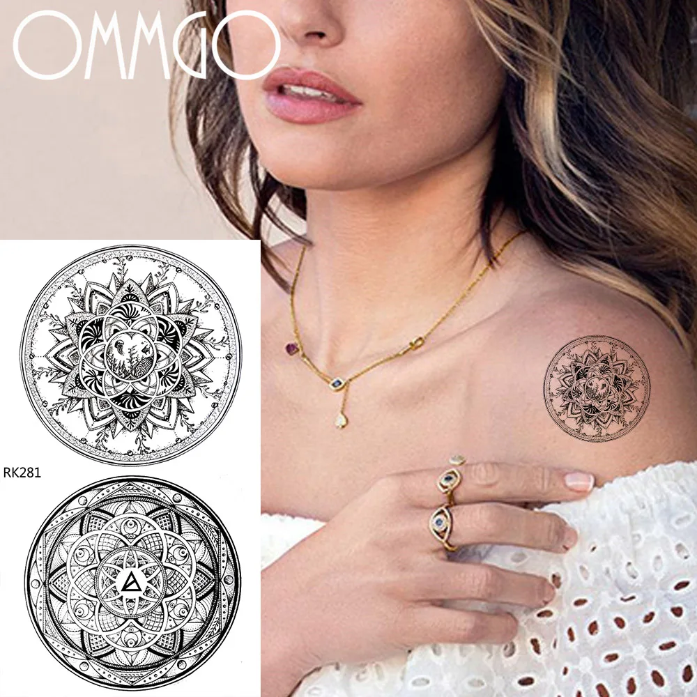 Черная мандала, цветок, Временные татуировки, боди-арт, рука, плечо, иллюстрация, бумага для тату Paste, водостойкая поддельная тату-наклейка, крутая