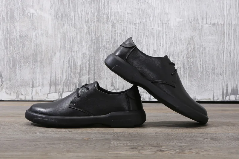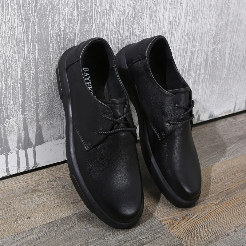 Мужские повседневные туфли из натуральной кожи с круглым носком, на шнуровке, дышащие мужские износостойкие лоферы