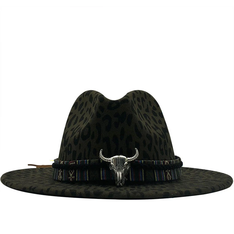 Фетровая Шляпа Унисекс, фетровая шляпа с плоскими полями, шерсть, джаз, леопард, кожа, декоративный ремешок, официальная Панама, новинка 2020